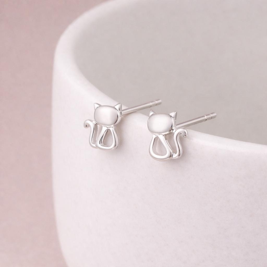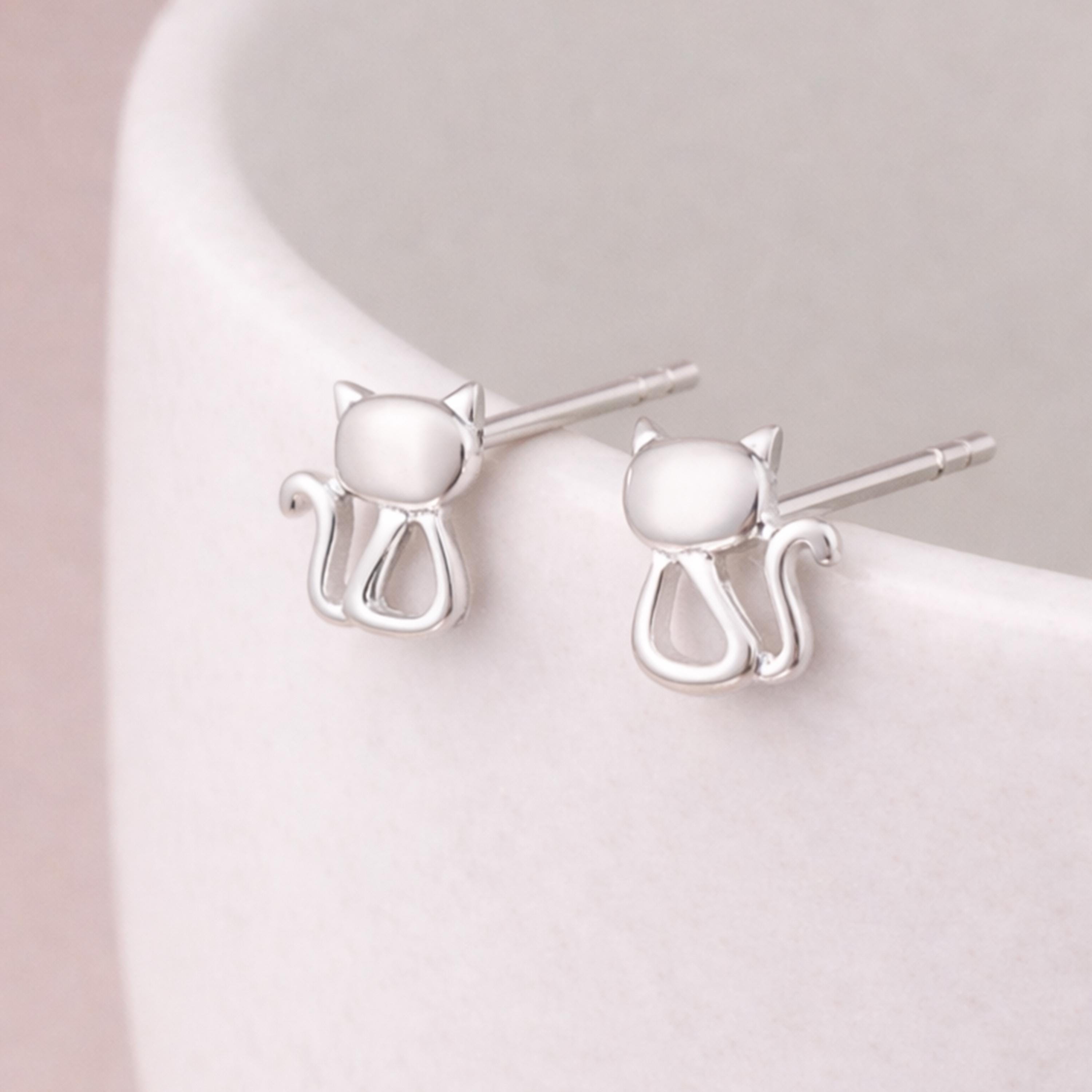 Perfect as sterling silver cat earrings, minimalist animal studs, cute everyday jewellery, or a thoughtful gift for cat lovers, this design combines simplicity with personality.