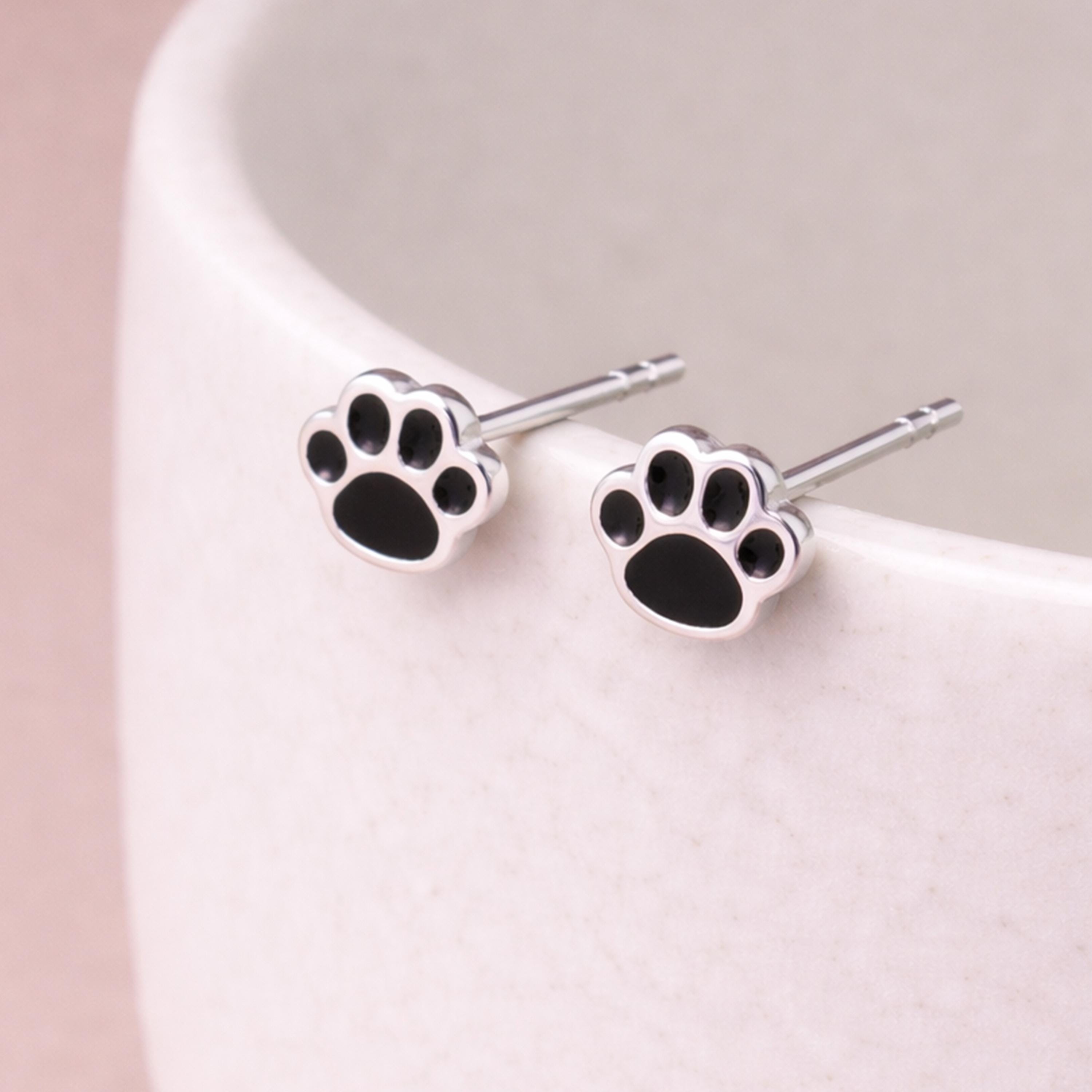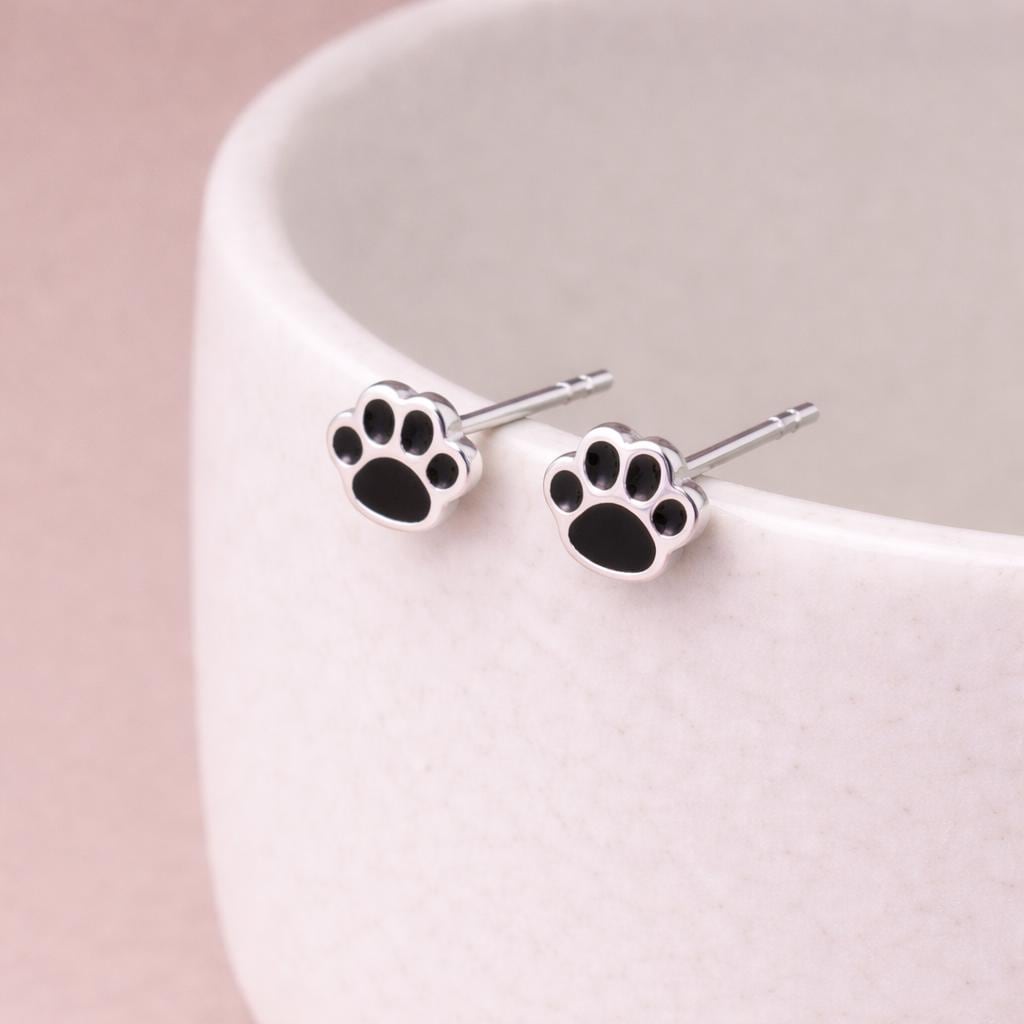 Perfect as sterling silver paw print earrings, black enamel animal studs, pet lover jewellery, or a thoughtful gift for a dog or cat owner, this design blends charm with simplicity.