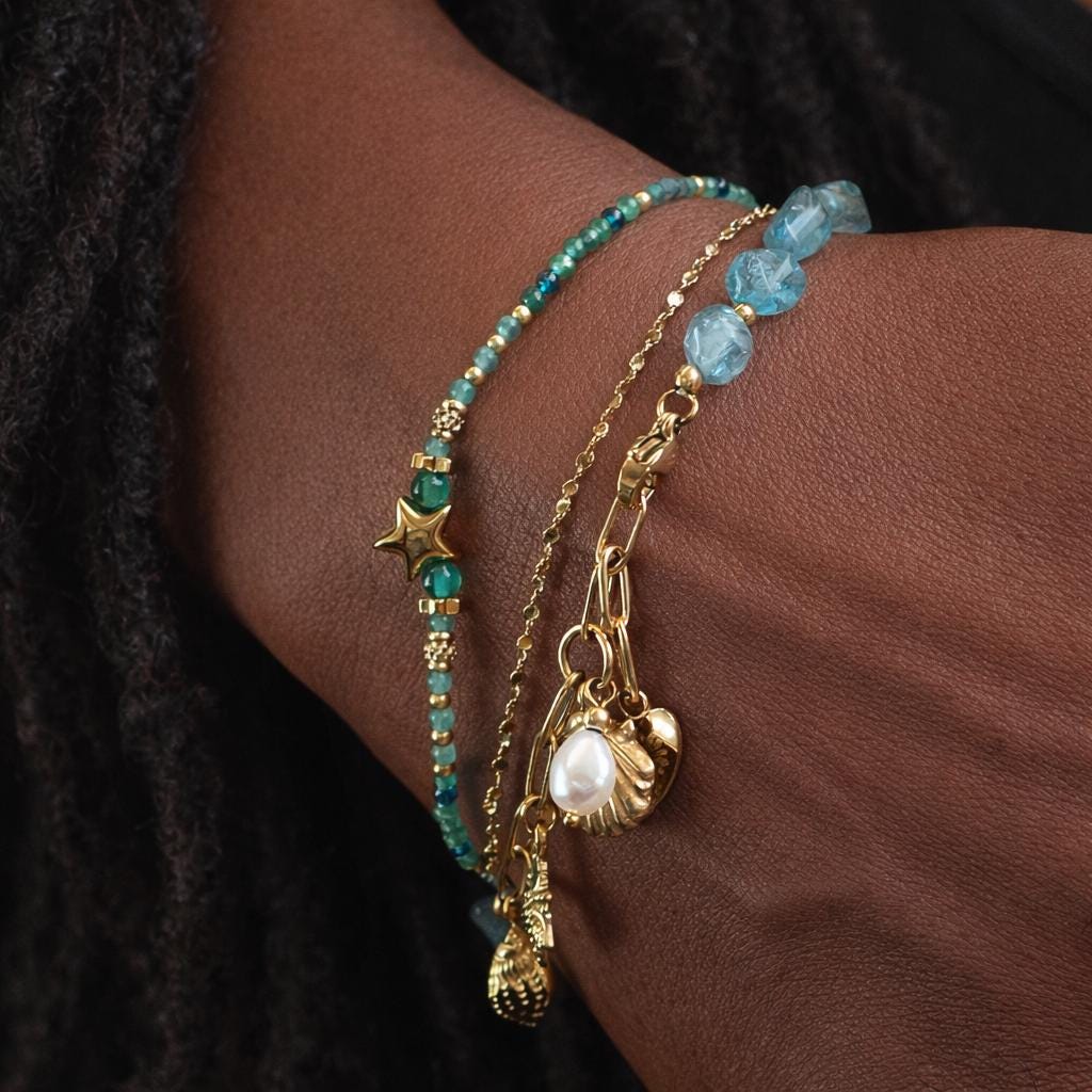 Perfect as a coastal charm bracelet, aqua gemstone jewellery piece, summer holiday accessory, or thoughtful gift for ocean lovers, this design captures a relaxed yet refined seaside feel.