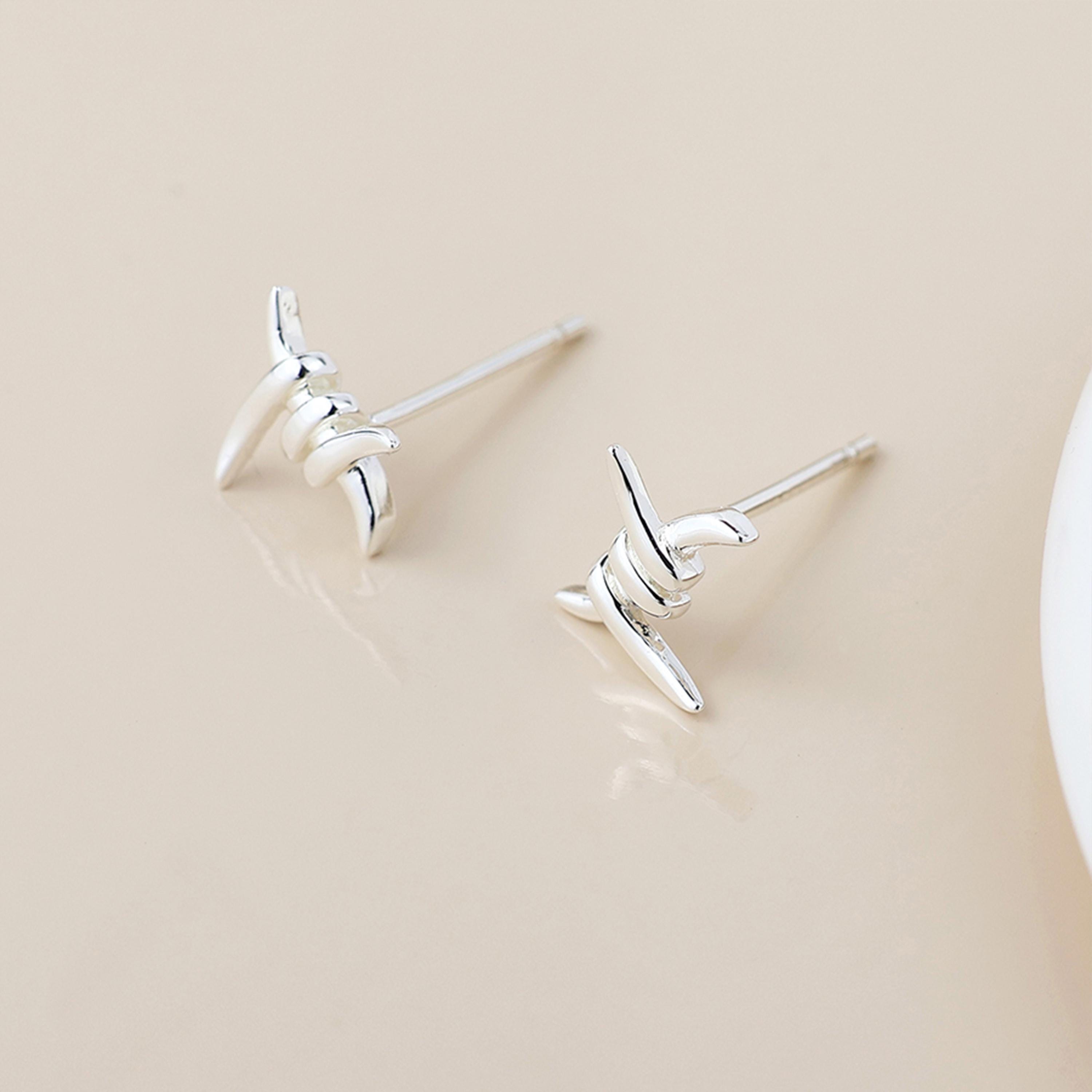 These barbed wire stud earrings are crafted from solid 925 sterling silver and finished in a bright polished silver tone. Designed in a miniature barbed wire silhouette, they offer a contemporary, edgy look in a compact everyday style.