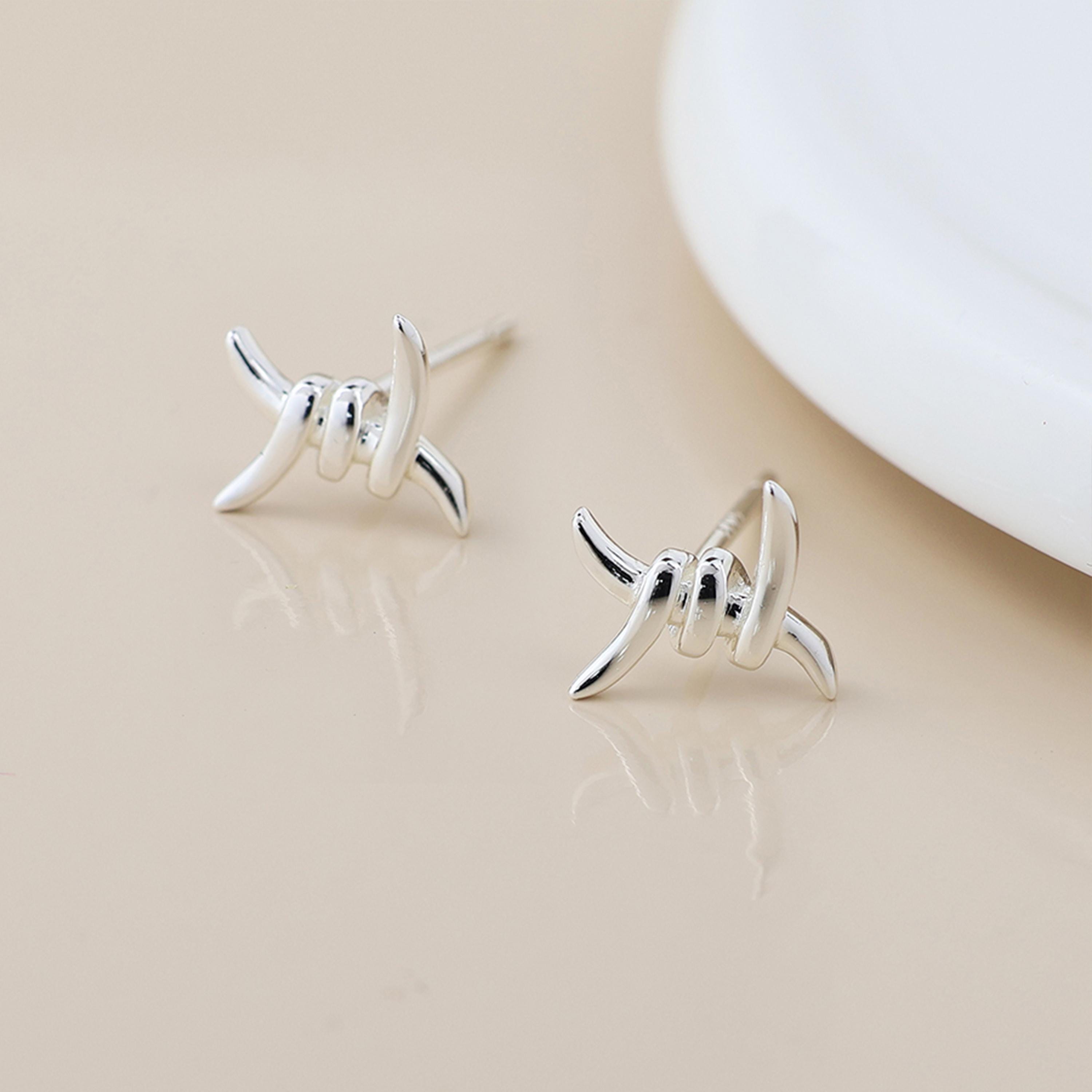Perfect as sterling silver barbed wire studs, edgy minimalist earrings, alternative silver jewellery, or a unique gift, this design balances statement style with everyday comfort.