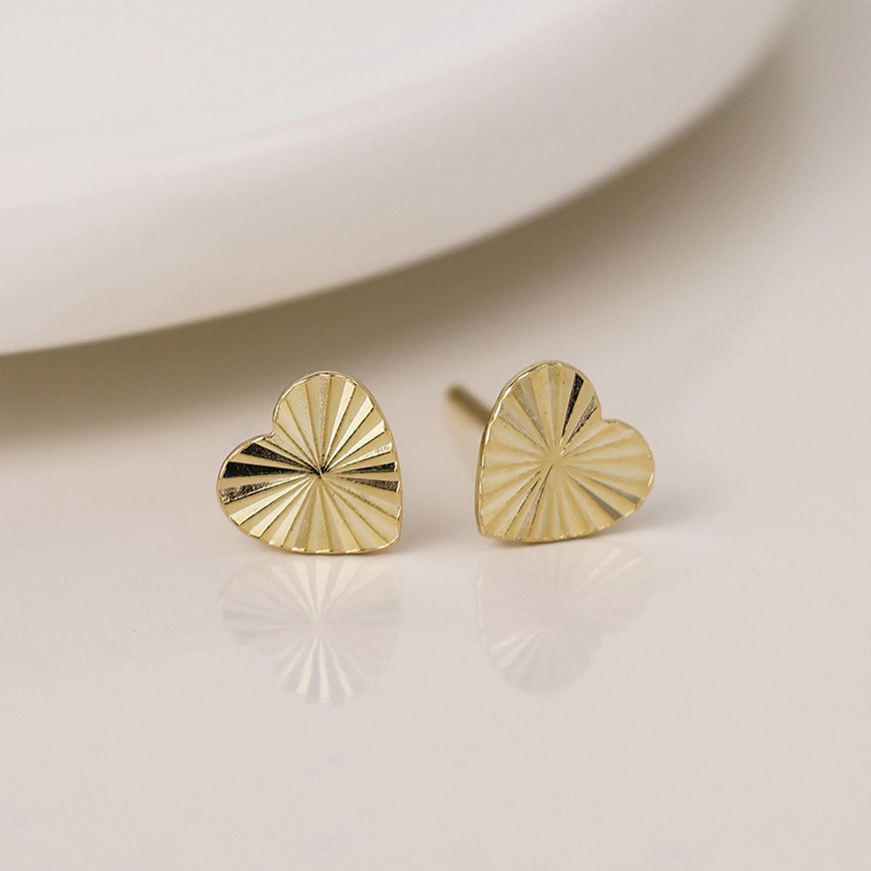 These Sunburst Heart Stud Earrings are crafted from 925 sterling silver with a warm yellow gold plating and feature a delicate 7mm heart design finished in a radiant golden tone. Feminine, meaningful, and easy to wear, they offer a timeless symbol of love with a modern textured twist.