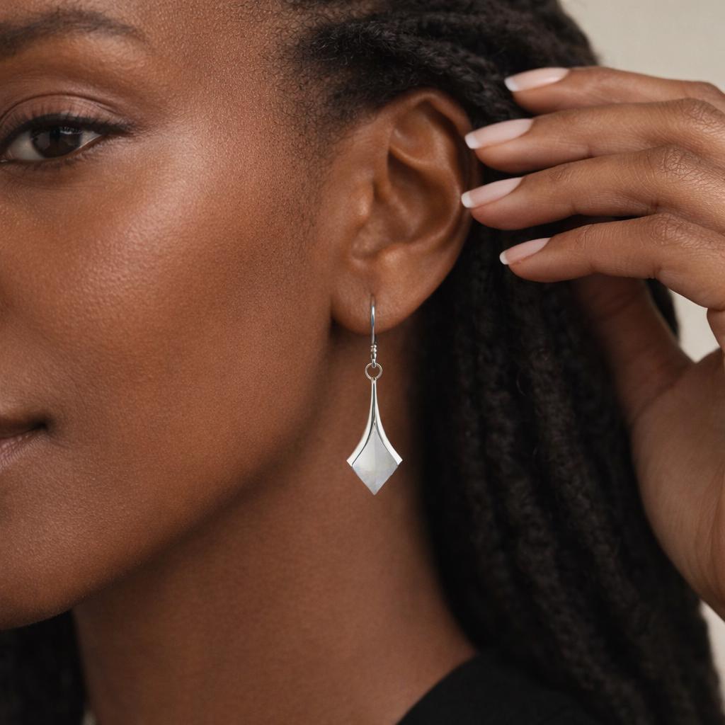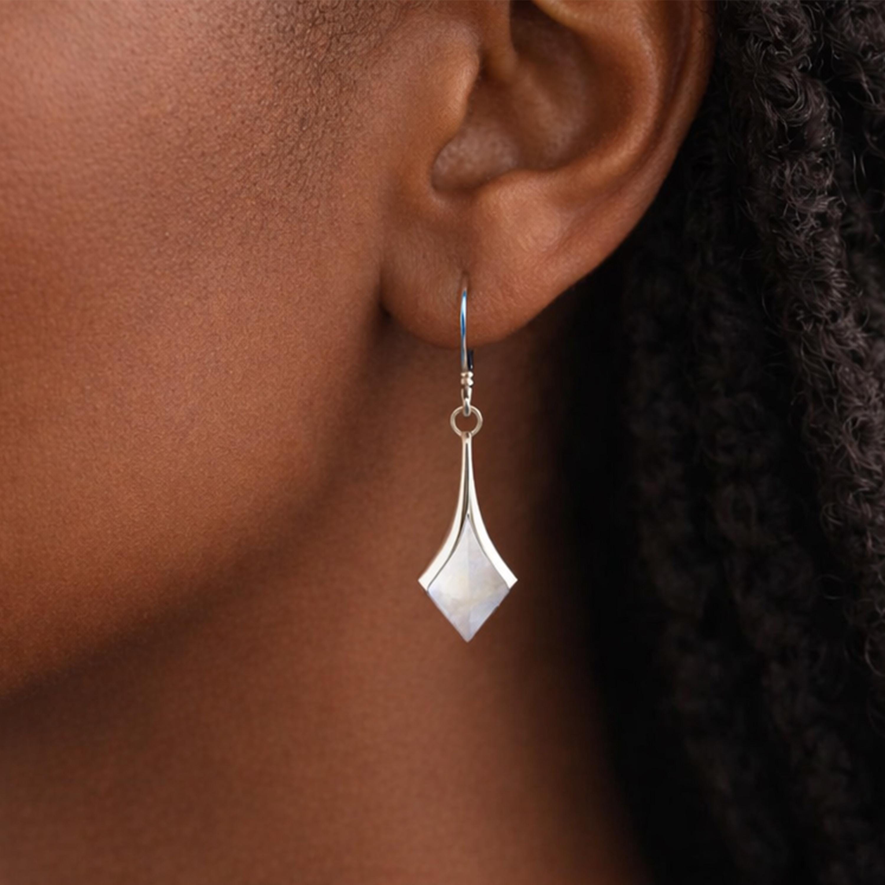 Perfect as sterling silver drop earrings, Mother of Pearl statement earrings, bridal jewellery, anniversary gifts, or elegant everyday earrings, this design blends modern lines with classic natural beauty.