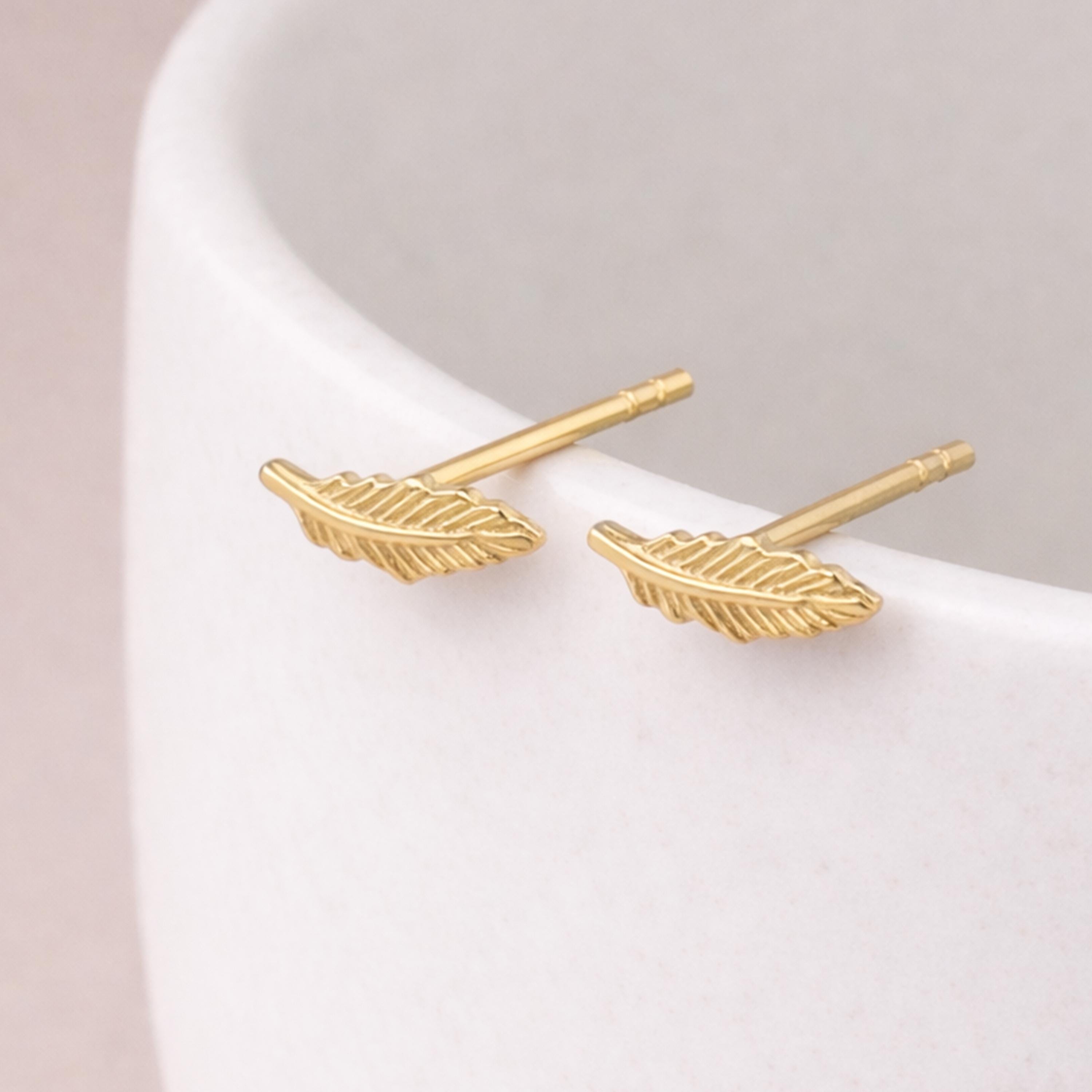 These Gold Feather Stud Earrings are crafted from solid 925 sterling silver with 18ct yellow gold plating and finished in a warm, polished golden tone. Delicately detailed and beautifully proportioned at 10mm wide by 4mm high, they offer a refined, nature inspired look in a subtle everyday size.