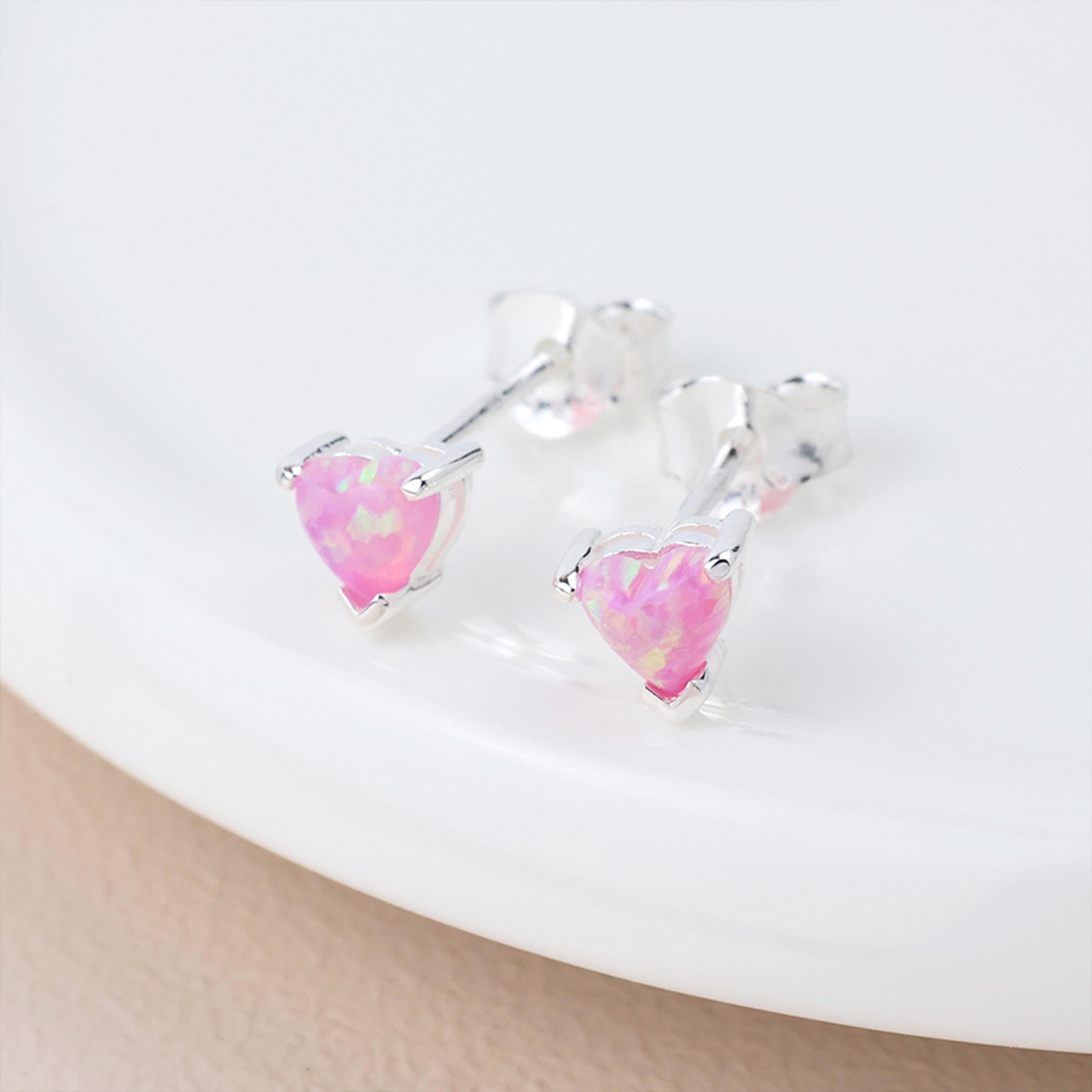 Perfect as pink opal heart studs, romantic silver earrings, October birthstone inspired jewellery, dainty gemstone studs, or meaningful gifts for birthdays and anniversaries, this design blends sentiment with a soft pop of colour.