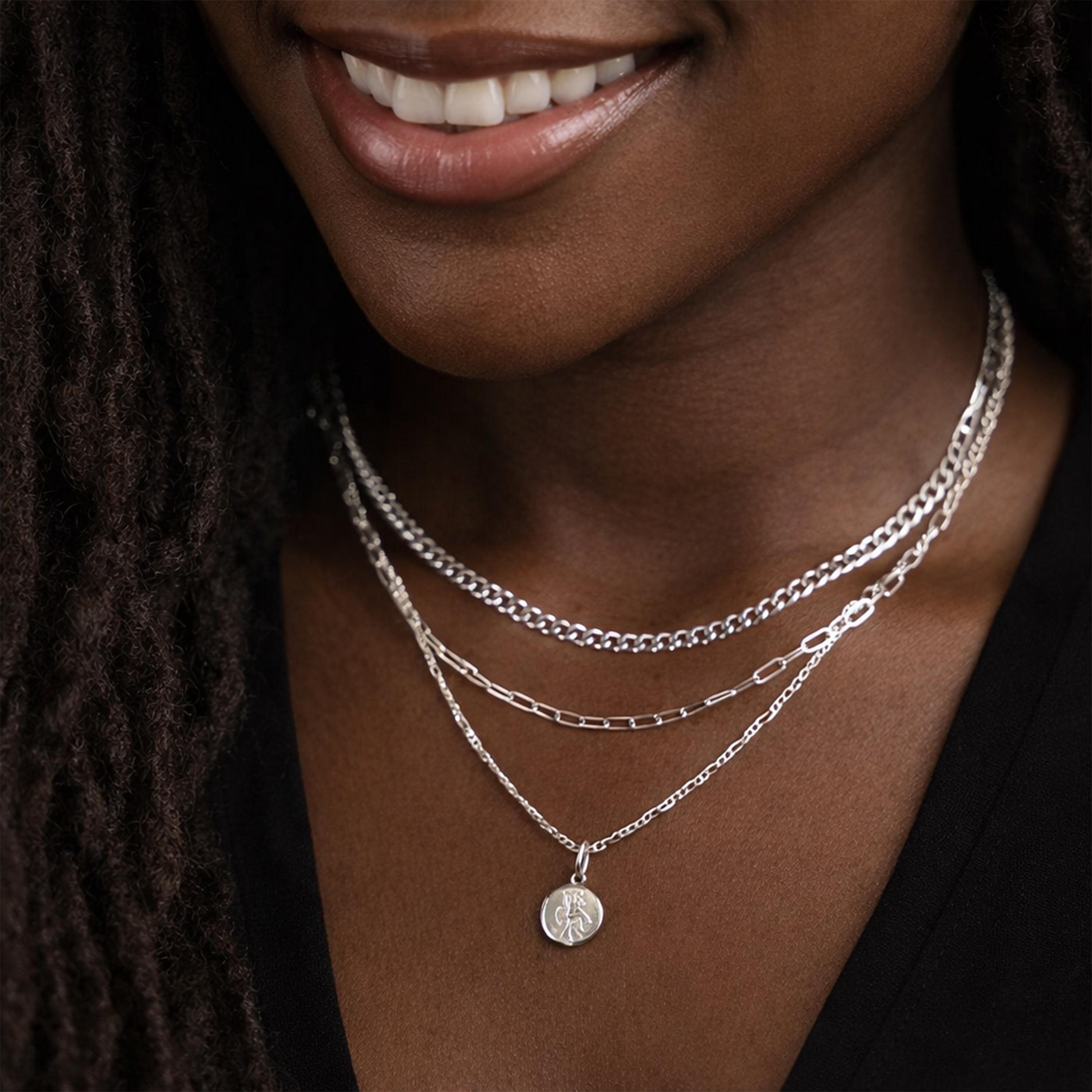 The reverse of the pendant can be personalised with a name, initials, or date, with up to 5 characters recommended to maintain clarity and balance. A choice of font styles is available, allowing you to create a bespoke piece tailored to you or someone special. Personalisation is engraved onto the back, keeping the front design classic and untouched.