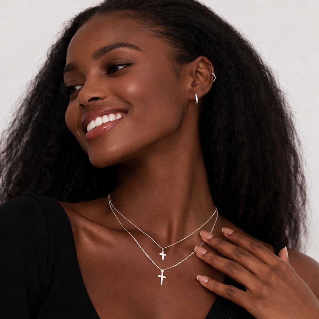 This Cross Pendant Necklace is crafted from solid 925 sterling silver and finished in a bright, polished silver tone, offering a clean and timeless symbol of faith. Minimal and refined, it is designed for everyday wear while carrying deep personal meaning.