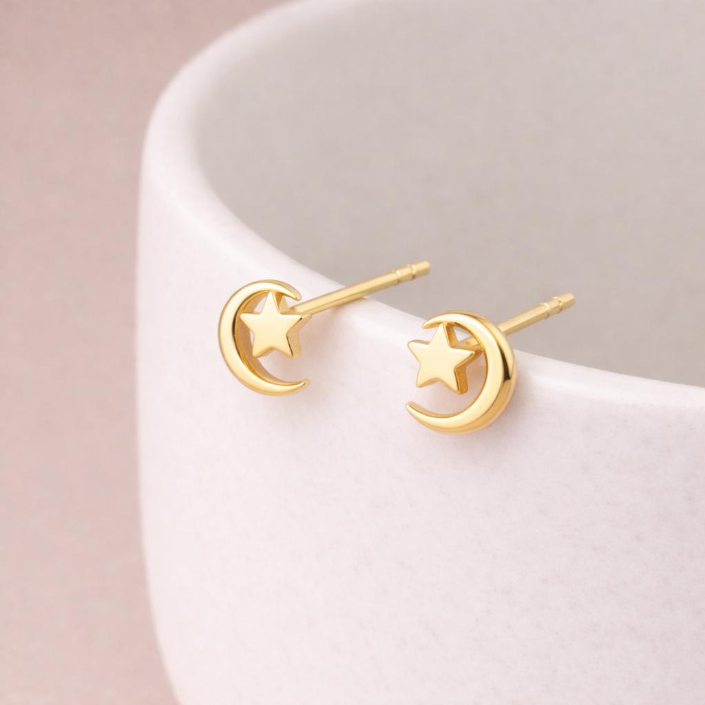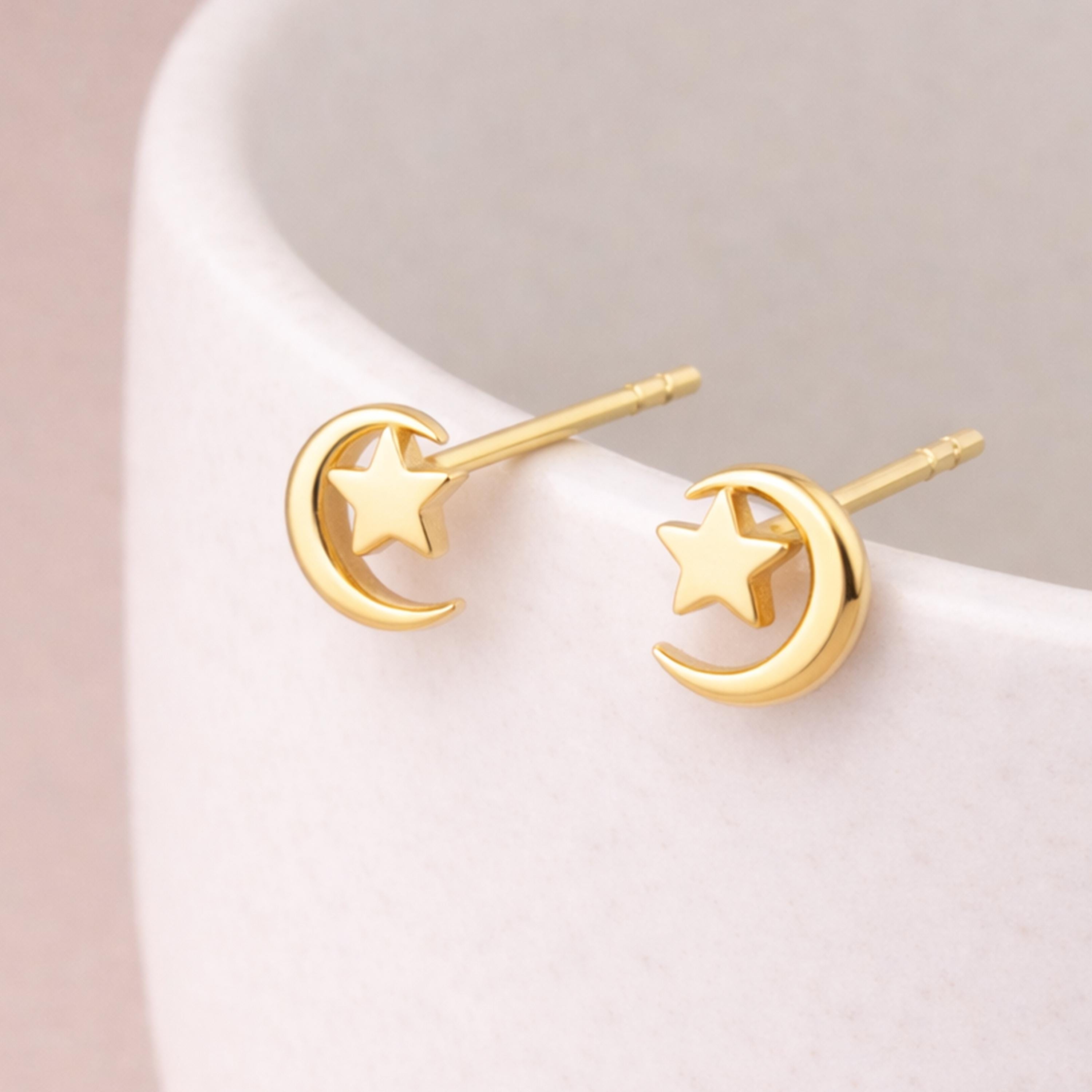 Perfect as gold moon and star earrings, celestial jewellery, minimalist gold studs, birthday gifts, or everyday dainty earrings, this design blends timeless symbolism with contemporary simplicity.