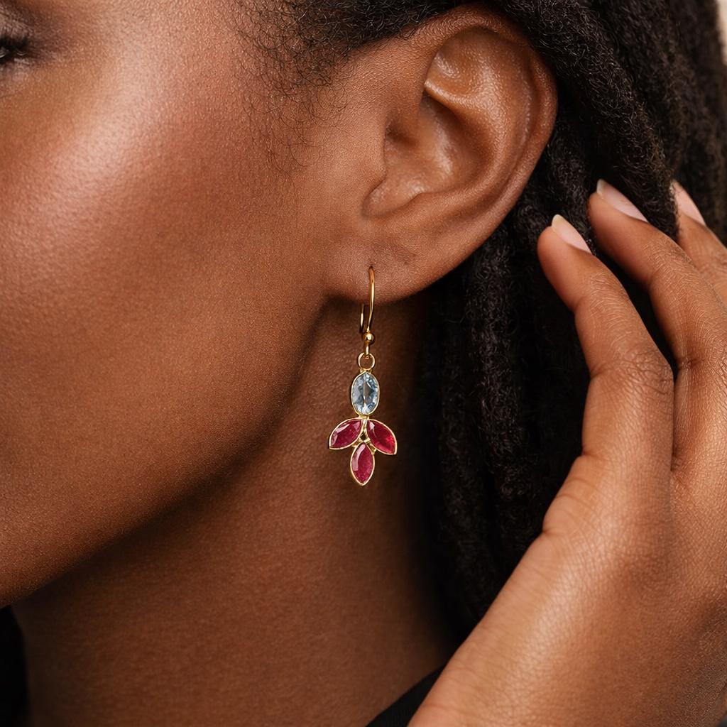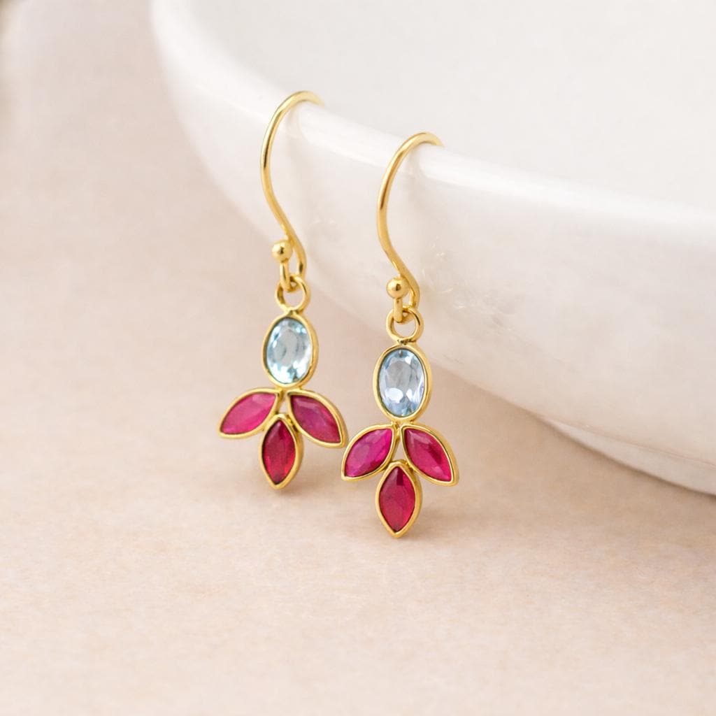 Perfect as gold vermeil gemstone earrings, blue topaz drop earrings, pink quartz jewellery, December birthstone jewellery, or elegant floral inspired earrings, this design blends vibrant colour with delicate elegance.
