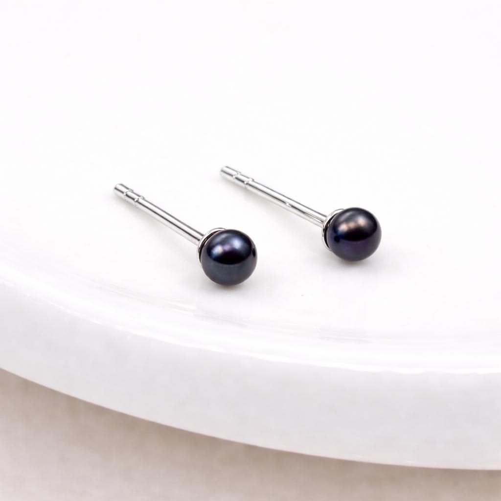 Perfect as sterling silver pearl studs, black pearl earrings, minimalist pearl jewellery, June birthstone earrings, or elegant everyday studs, this design combines classic simplicity with rich natural colour.