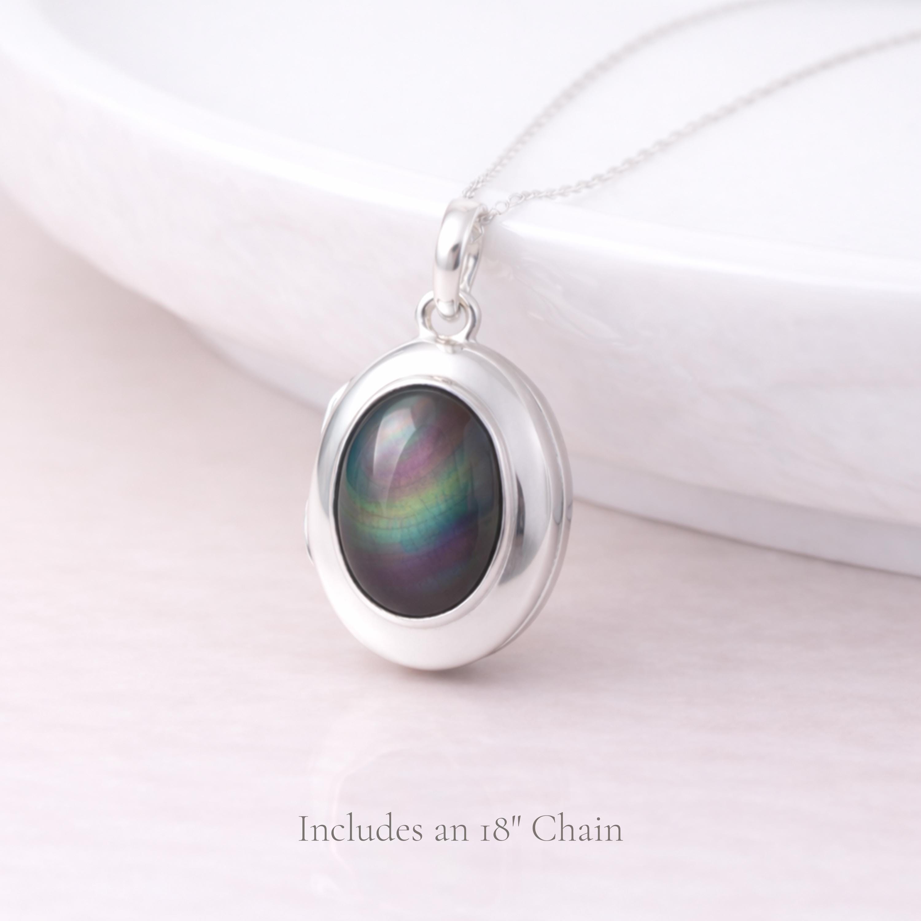 Perfect as a rainbow obsidian locket, black gemstone necklace, or personalised keepsake gift, this design blends understated colour with timeless sentiment.