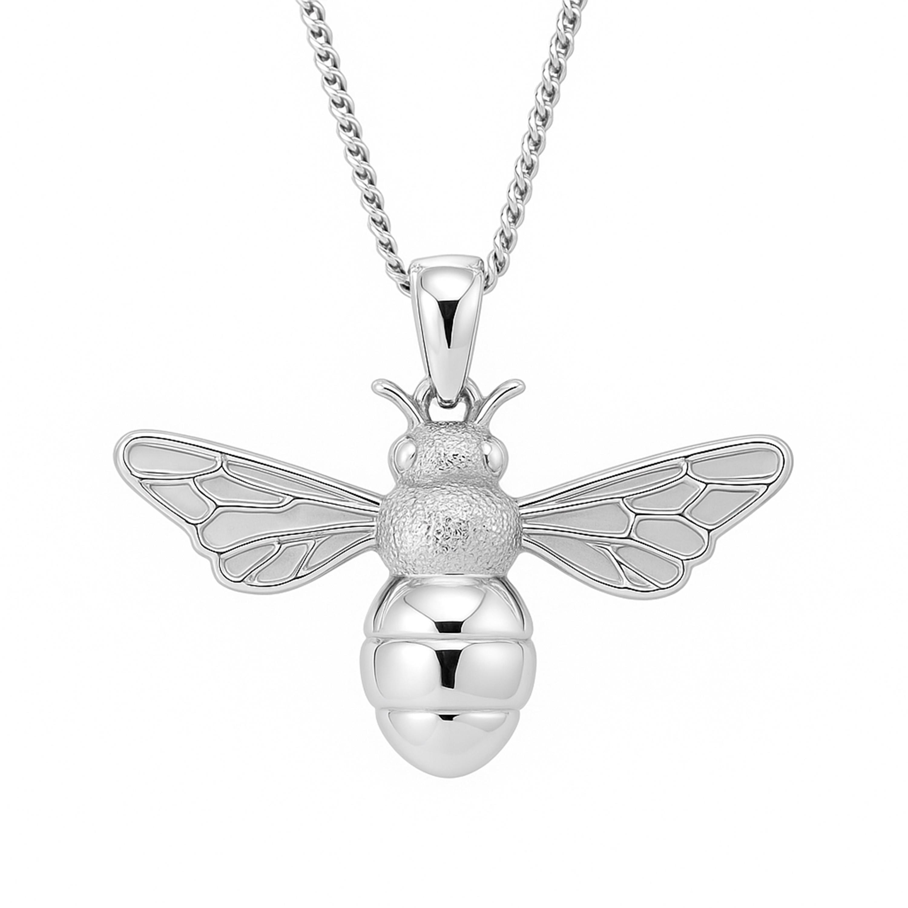 A detailed sterling silver bee pendant with a personalised disc – a meaningful gift symbolising strength, kindness and community.