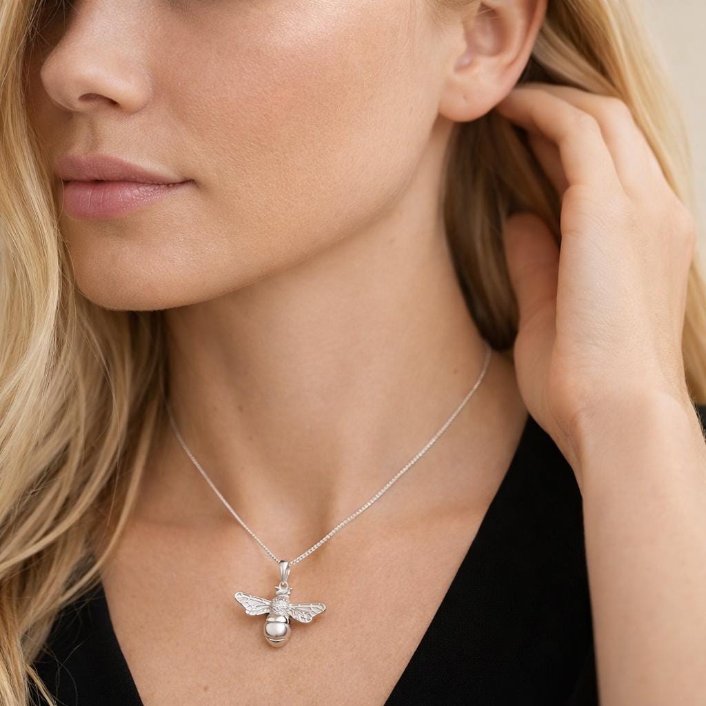 Perfect as a sterling silver bee necklace, nature inspired jewellery, symbolic pendant, personalised gift, or meaningful keepsake, this design celebrates the beauty and strength found in nature.