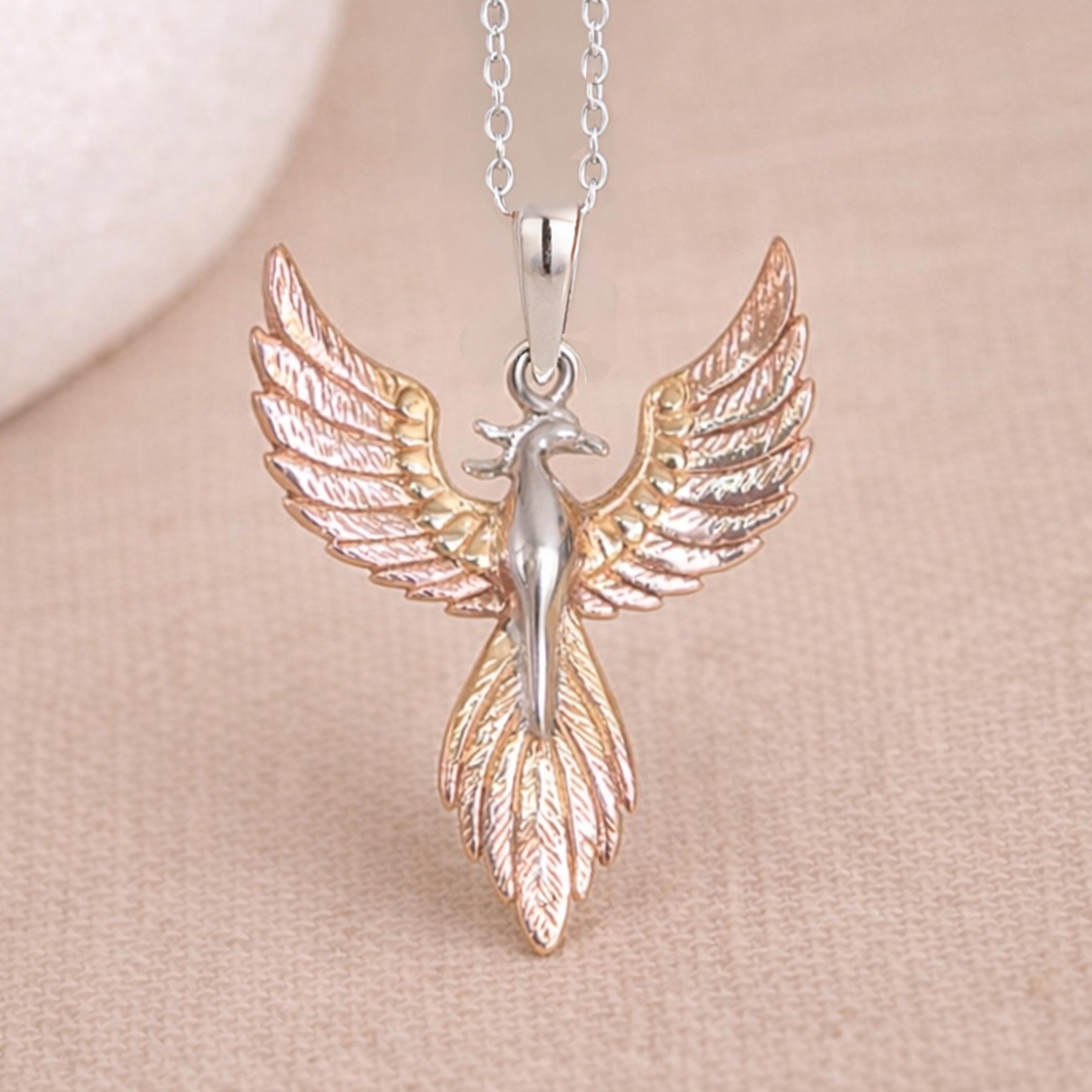 Perfect as a phoenix necklace, symbol of rebirth pendant, meaningful three tone jewellery piece, or inspirational gift for her, this design blends symbolism with elegant craftsmanship.