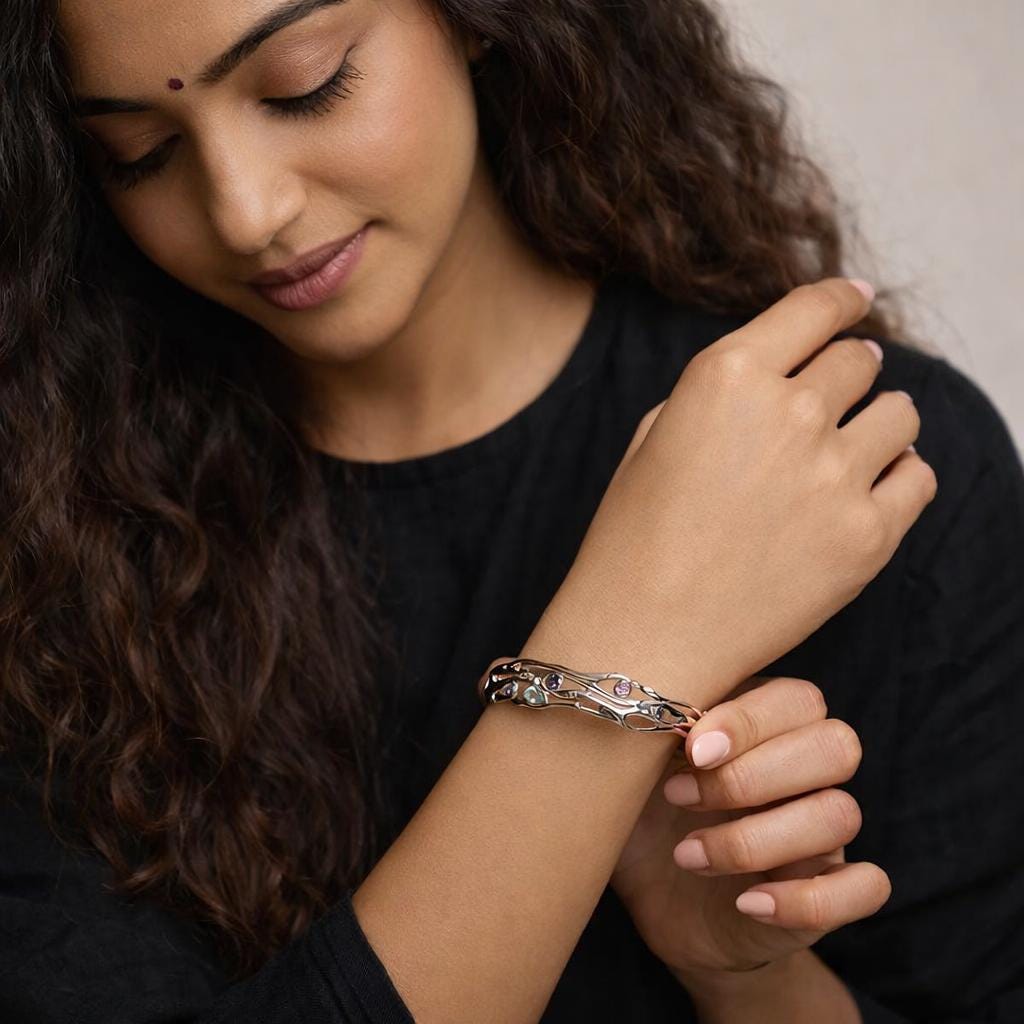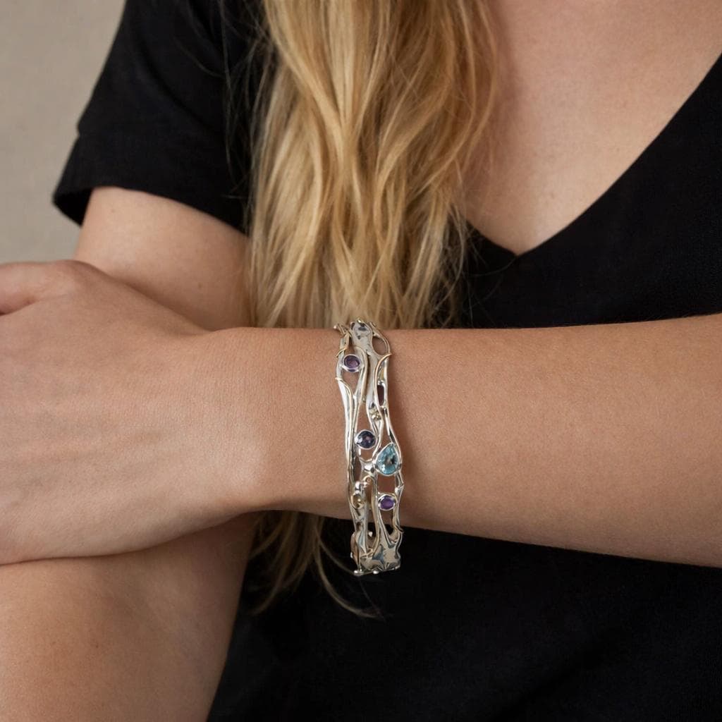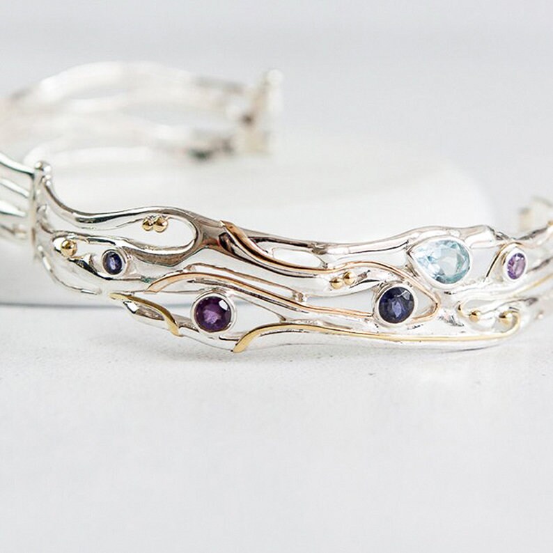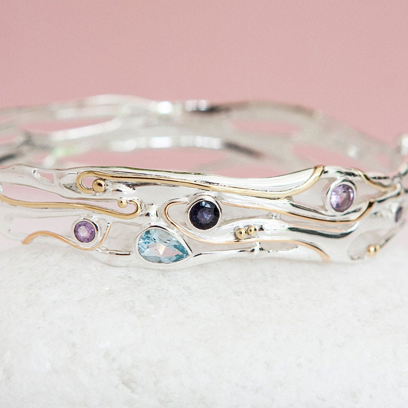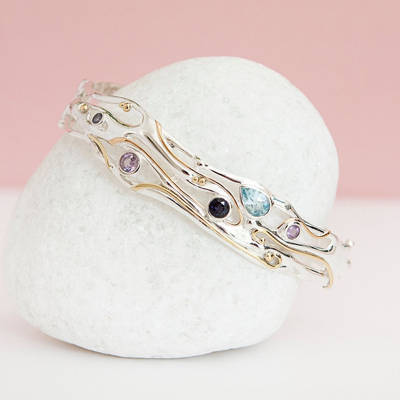 Ideal as a statement gemstone bangle, mixed metal jewellery piece, or thoughtful gift, this design combines colour, movement, and craftsmanship in a way that feels elegant and enduring, created to be worn and treasured for years to come.