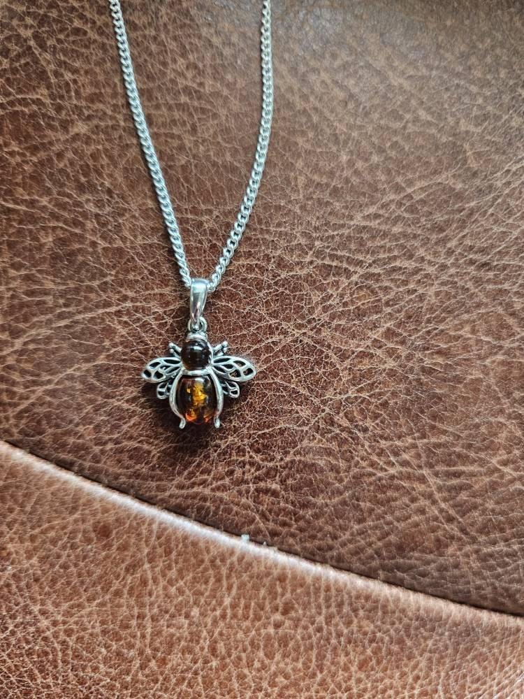 This sterling silver bee necklace is handcrafted from solid 925 sterling silver and set with genuine honey-coloured Baltic amber, creating a beautifully detailed, nature-inspired pendant with timeless appeal.