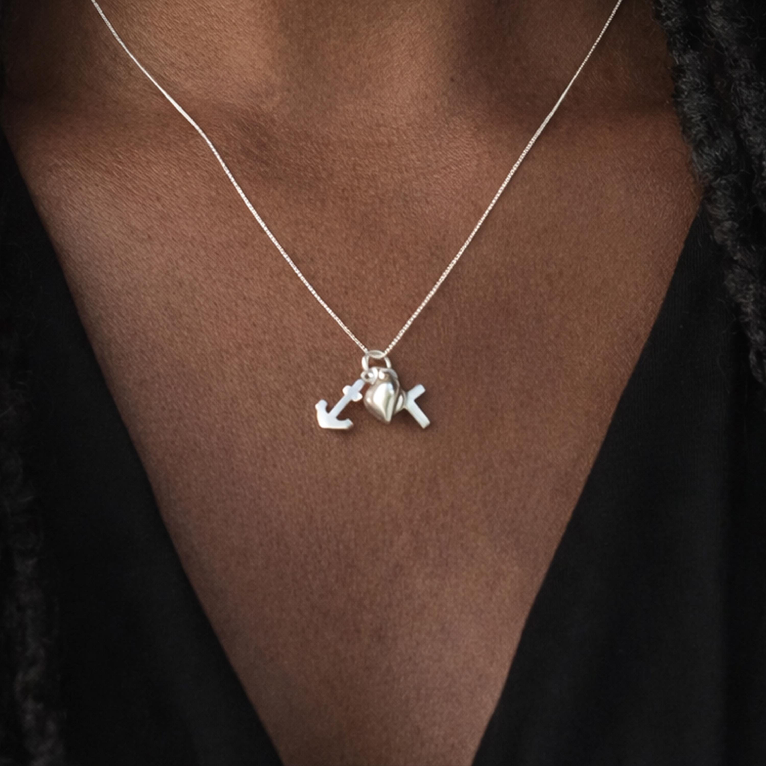 The heart symbolises love and charity, the anchor represents hope and stability, and the cross signifies faith. Together, they create a powerful and timeless message, making this necklace a thoughtful gift for christenings, confirmations, birthdays, anniversaries, or moments of encouragement.
