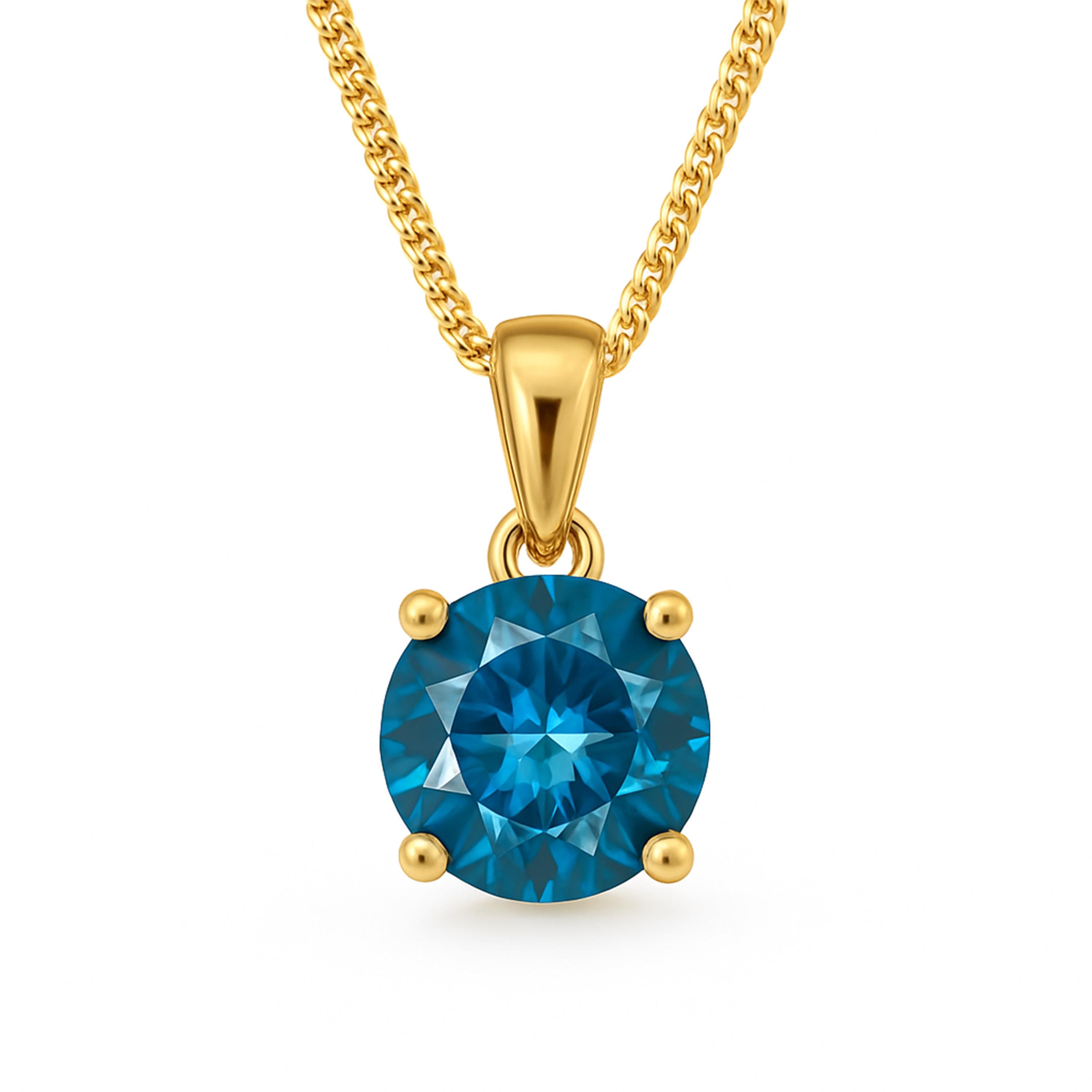 Delicate and radiant, this natural blue topaz pendant is a timeless classic. Set in warm 9ct yellow gold, the sky-toned stone catches the light beautifully with its fine cut and serene hue.