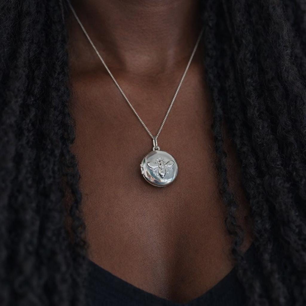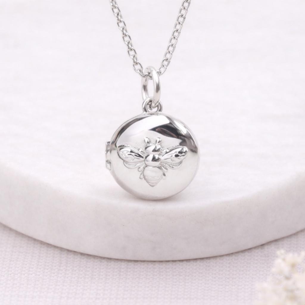Each locket is carefully made using traditional jewellery techniques, with a smooth, weighty feel that reflects its quality and durability. The round locket opens to reveal space inside for a small photograph or keepsake, making it a meaningful piece designed to hold something personal close to your heart. The raised bee detailing on the front adds texture and charm, while the polished silver surface keeps the overall look timeless and wearable.