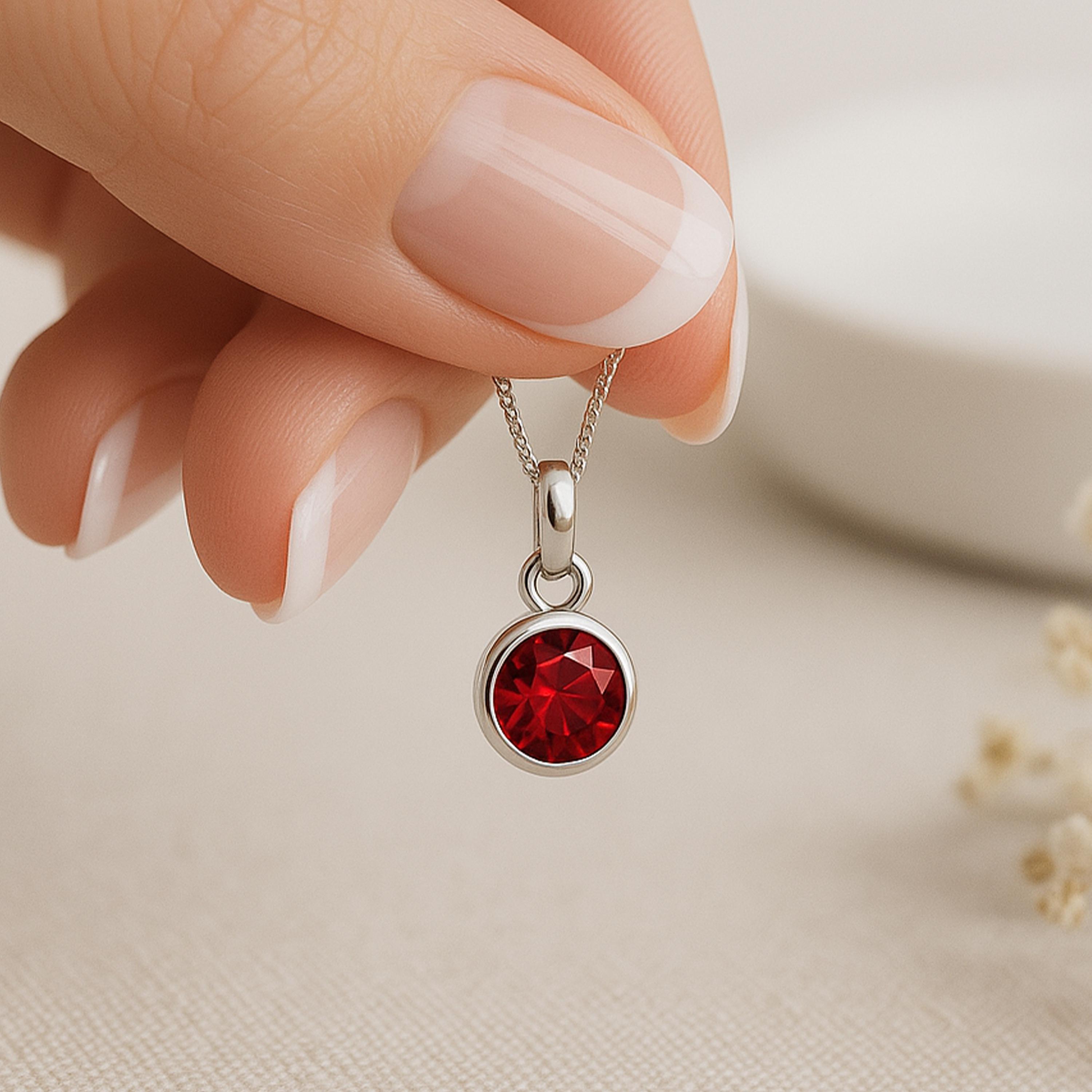 This deep red January birthstone charm features a garnet-coloured cubic zirconia set in solid 925 sterling silver. A symbol of love, vitality, and protection, garnet is a bold yet timeless choice for celebrating a January birthday or gifting something truly meaningful.
