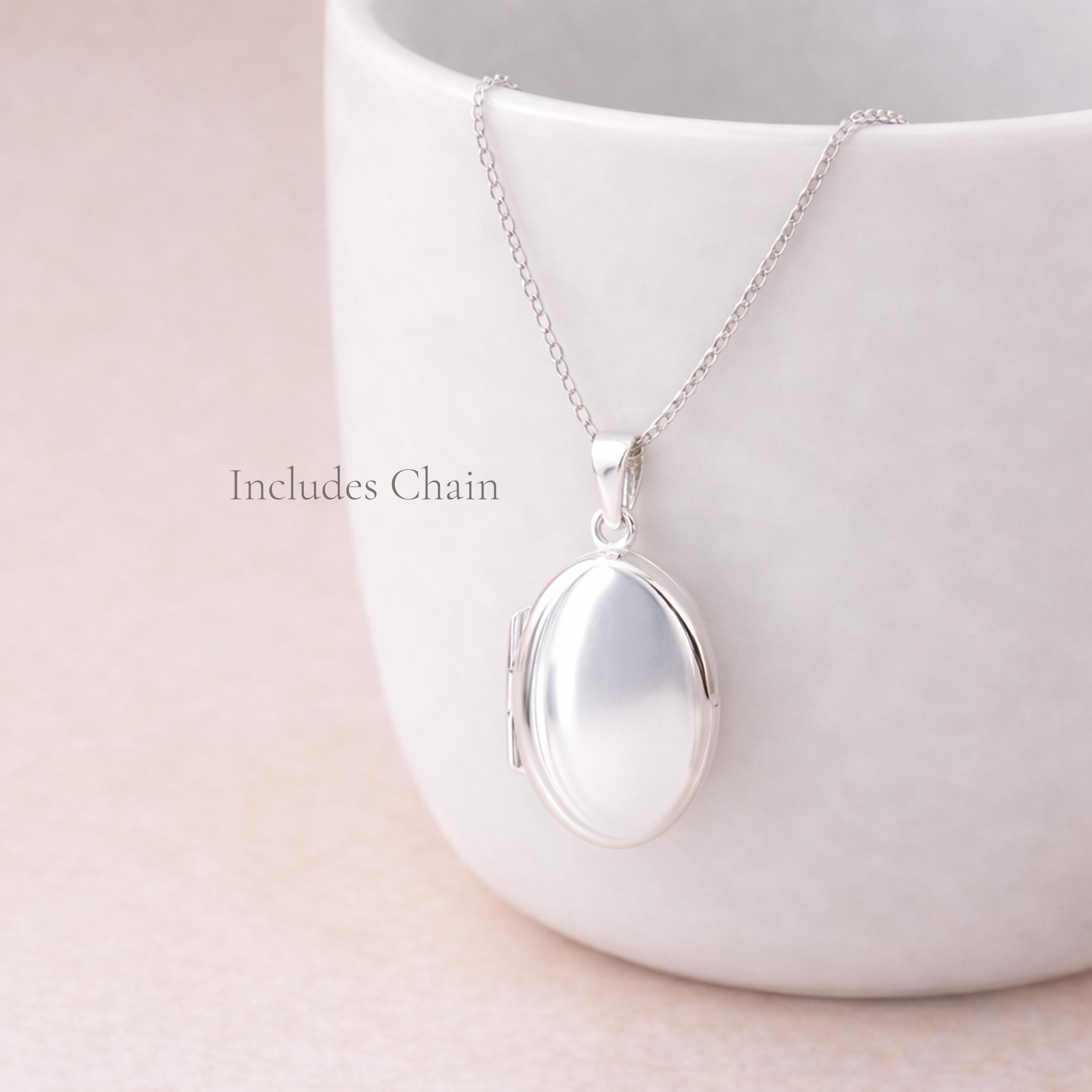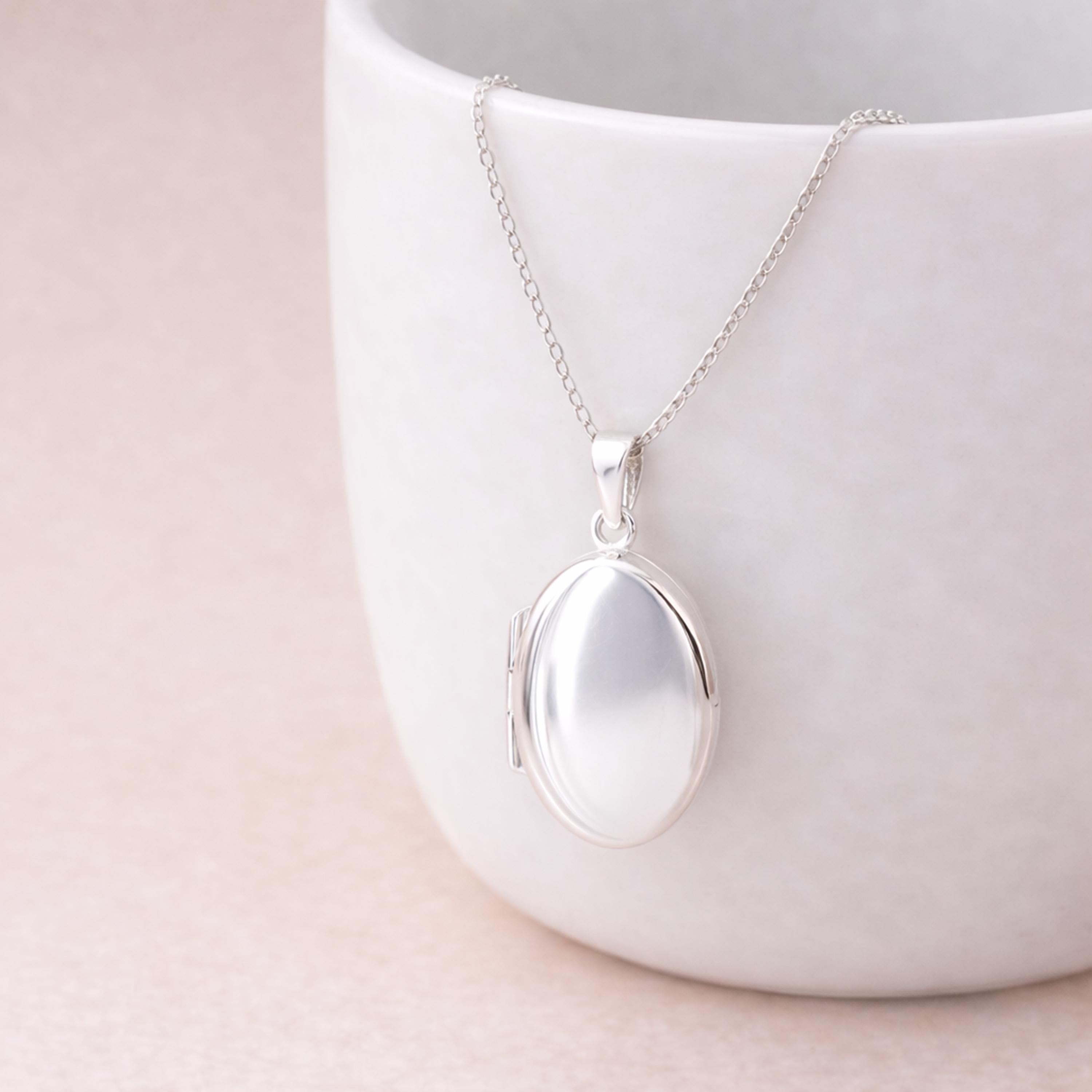 This classic oval locket necklace is crafted from solid 925 sterling silver and finished with a smooth, high-shine surface for a timeless and elegant look. Its clean, polished design makes it a beautifully versatile piece, perfect for everyday wear or meaningful gifting.