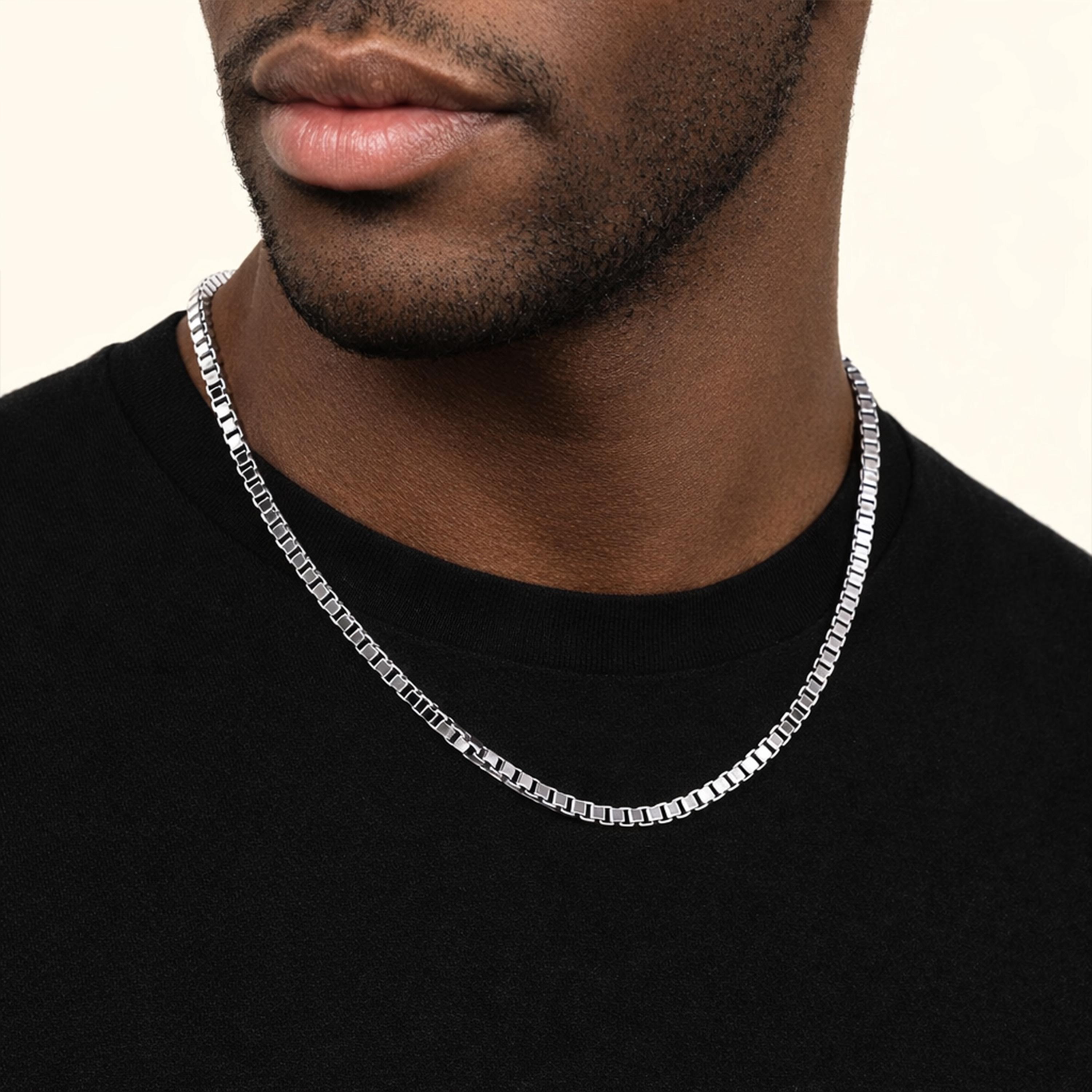 ♡ Style Tip: This 4mm box chain looks great worn on its own for a clean, confident look. It also pairs well with heavier pendants or dog tags, and layers nicely with finer chains for a modern, balanced style.