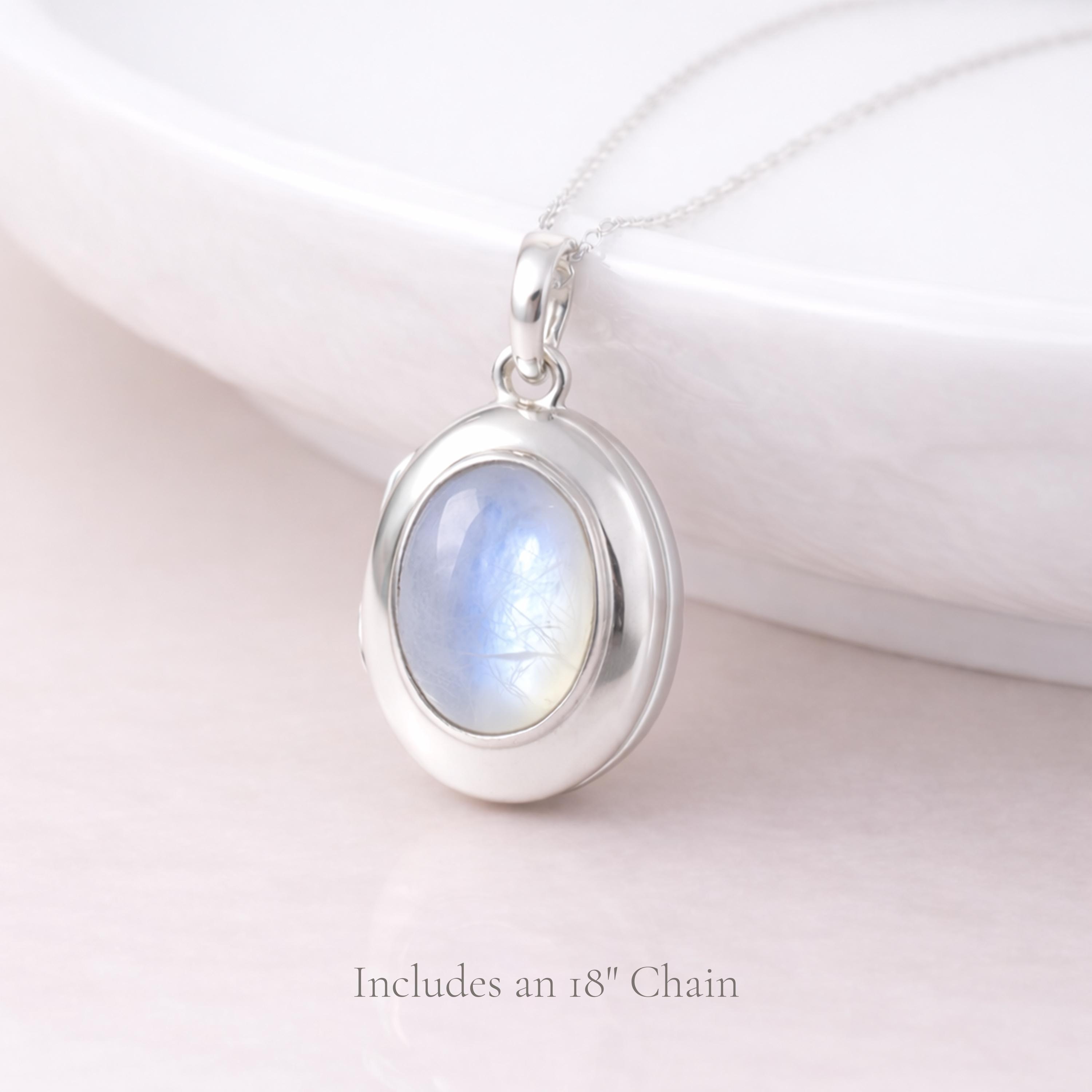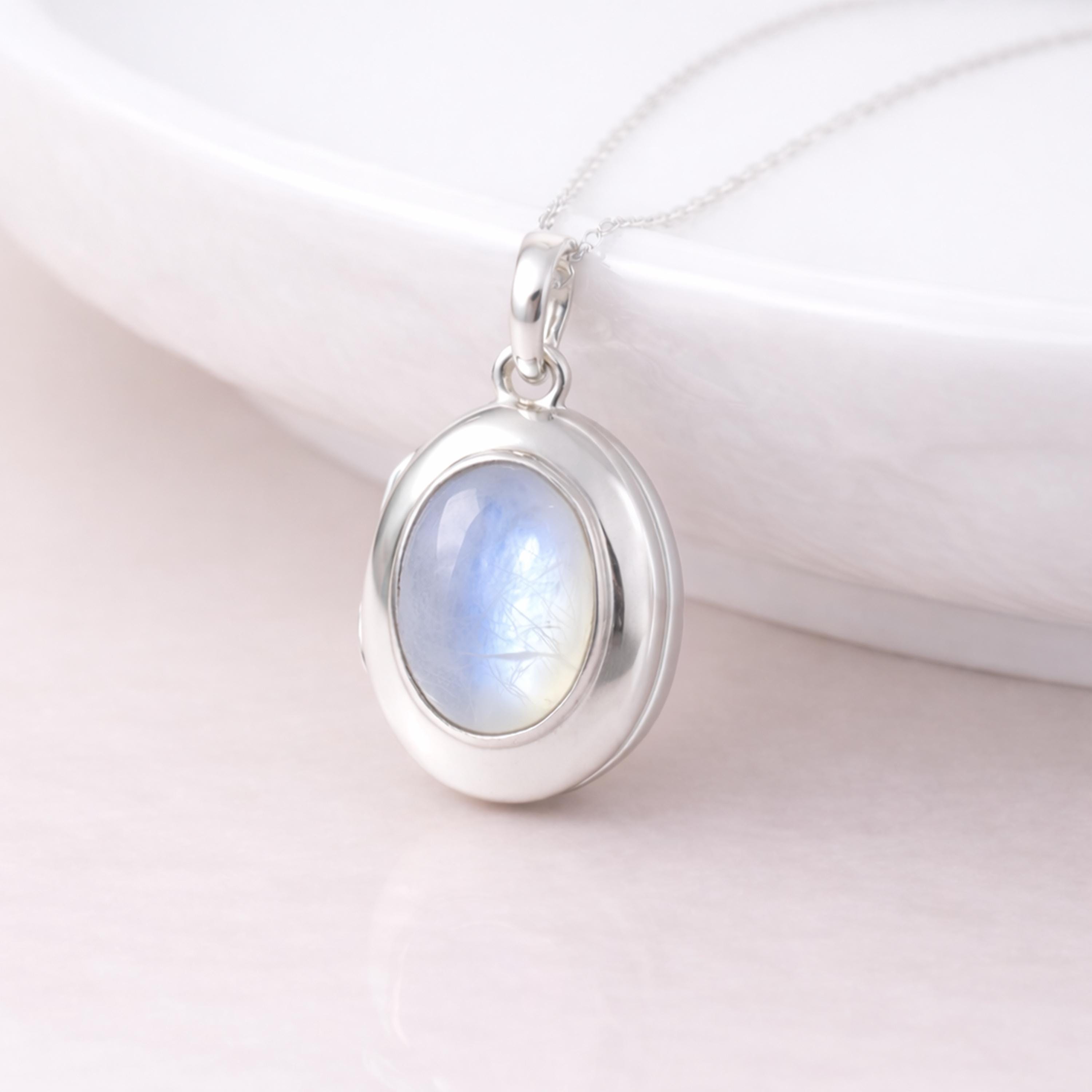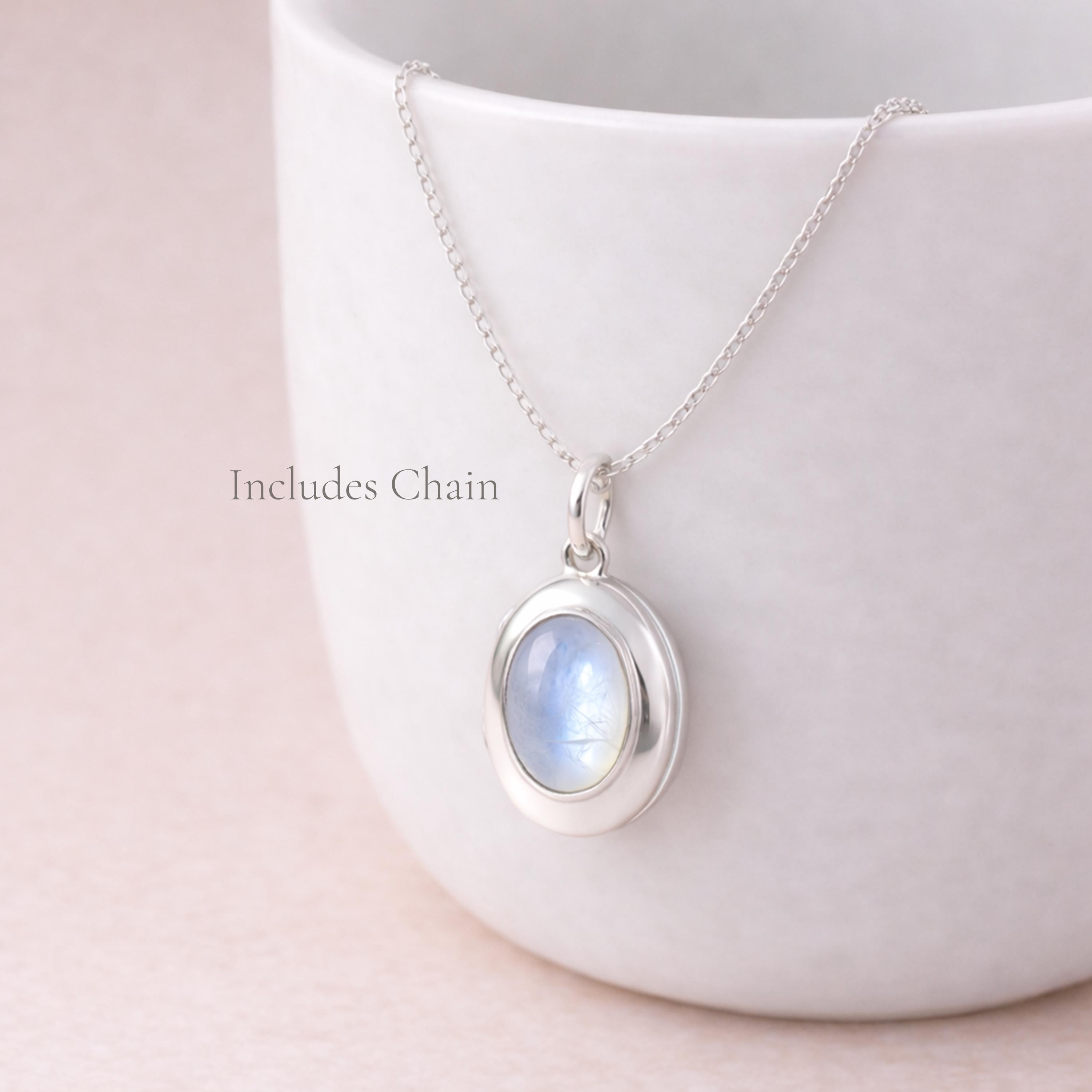Soft and luminous, this rainbow moonstone locket necklace is crafted from solid 925 sterling silver, blending timeless design with a gentle, iridescent glow.