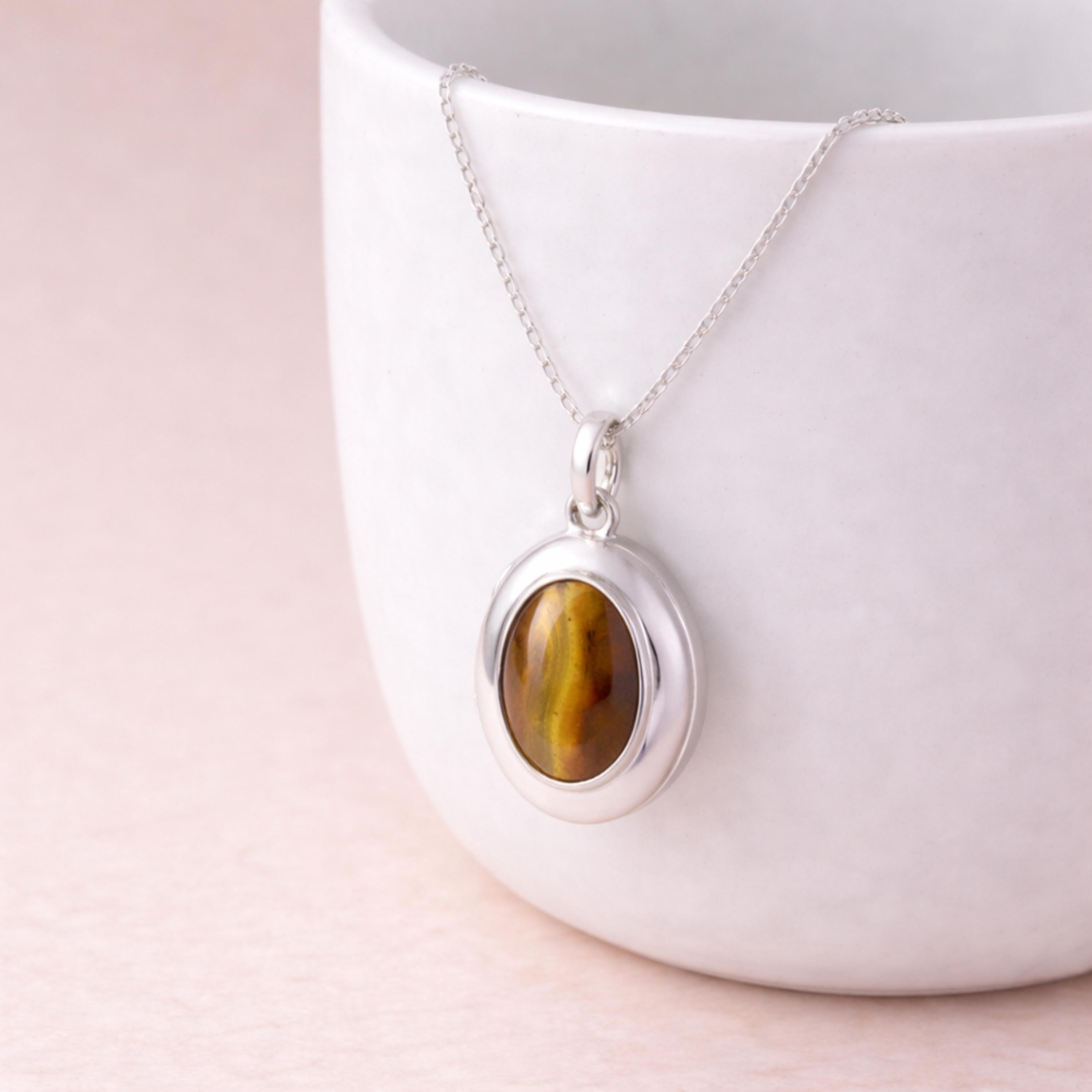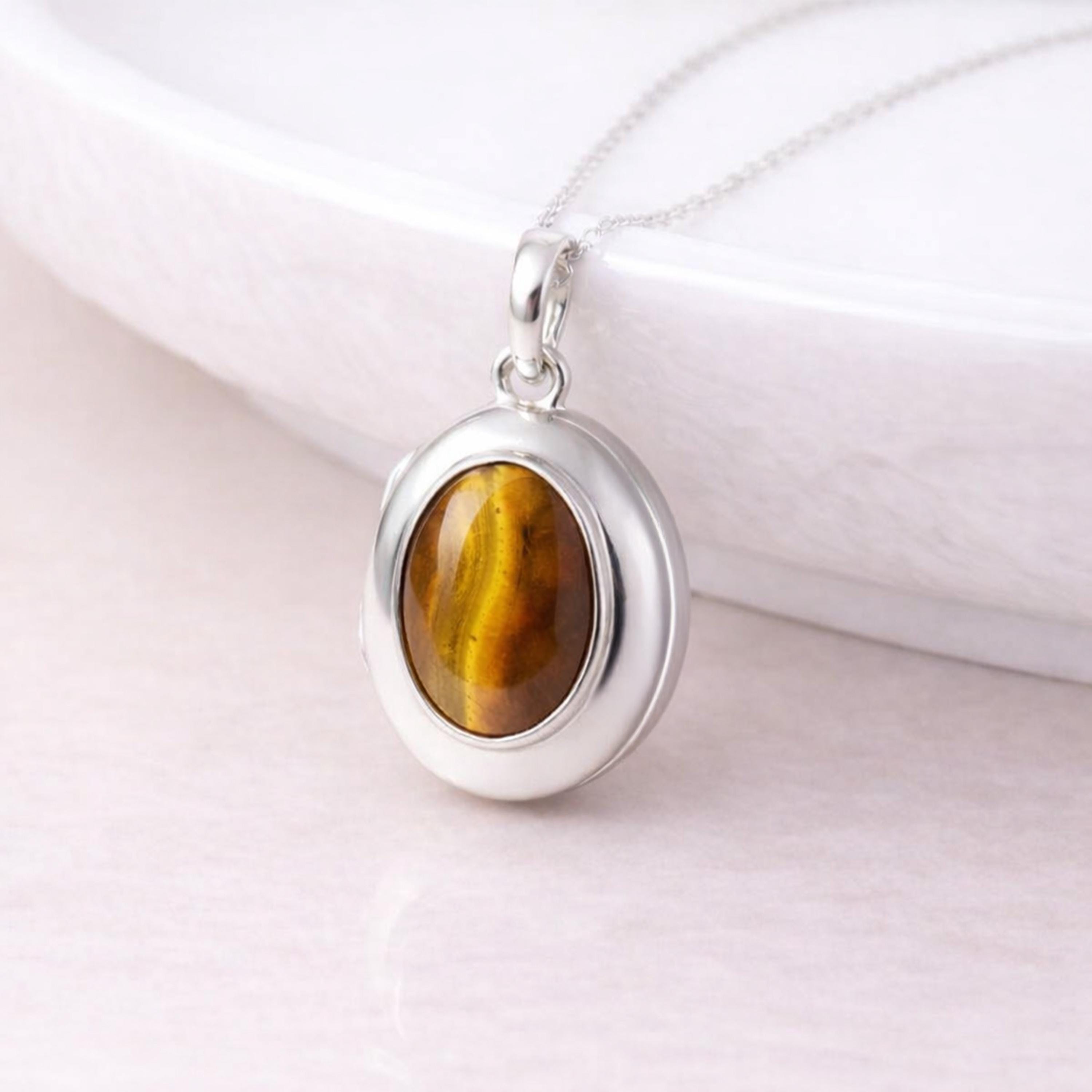 Perfect as a tiger’s eye locket, natural gemstone necklace, or personalised keepsake gift, this piece blends earthy warmth with timeless design.