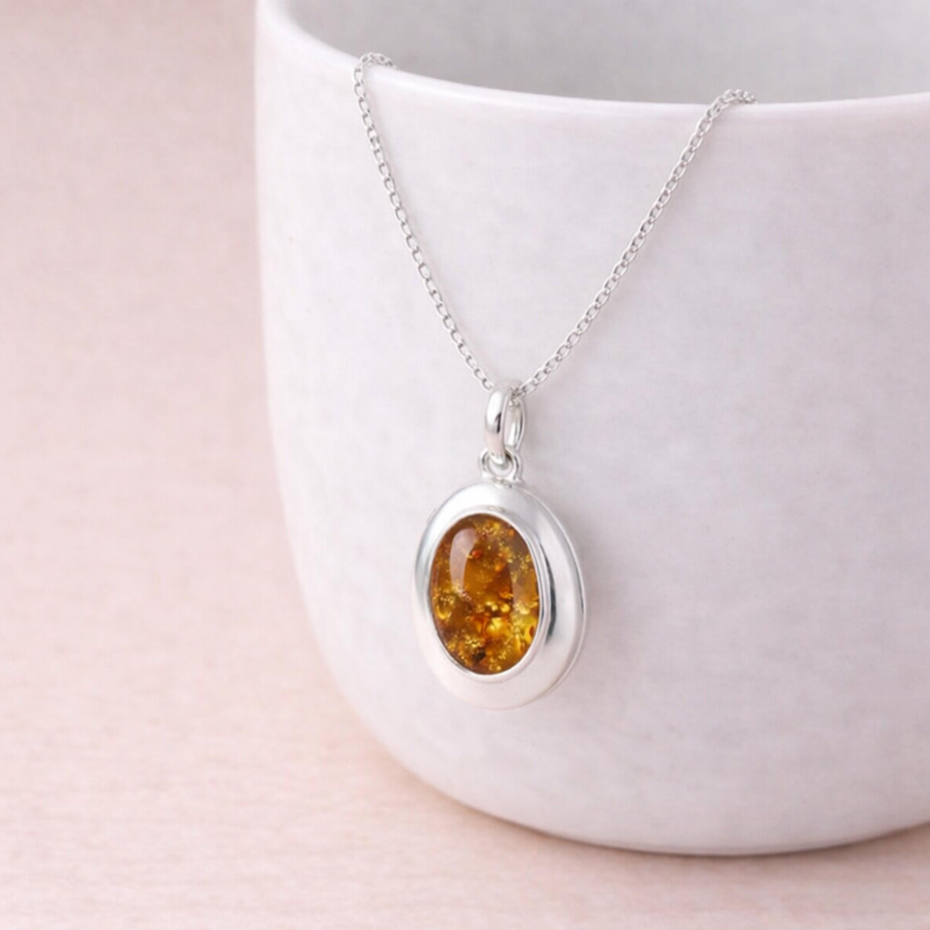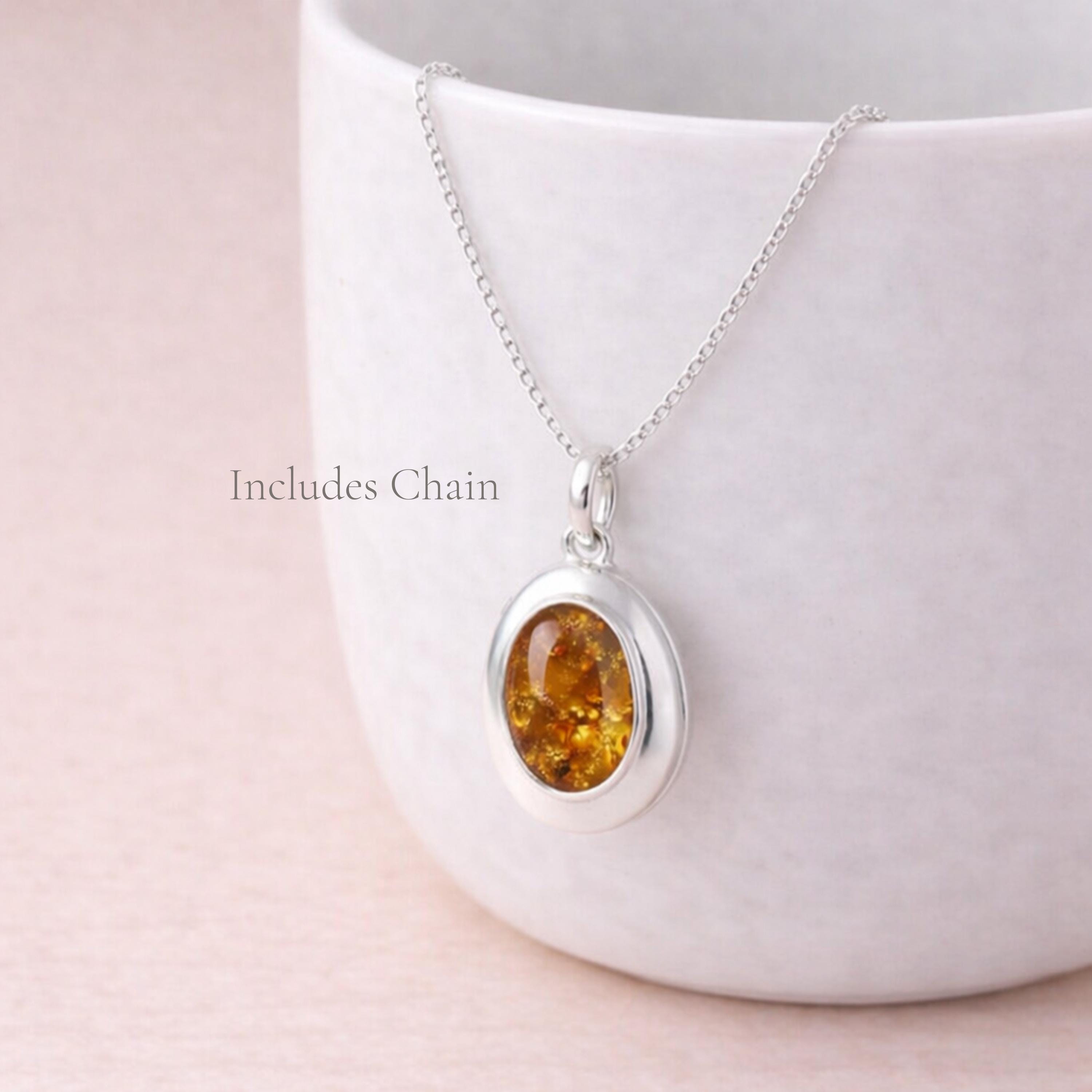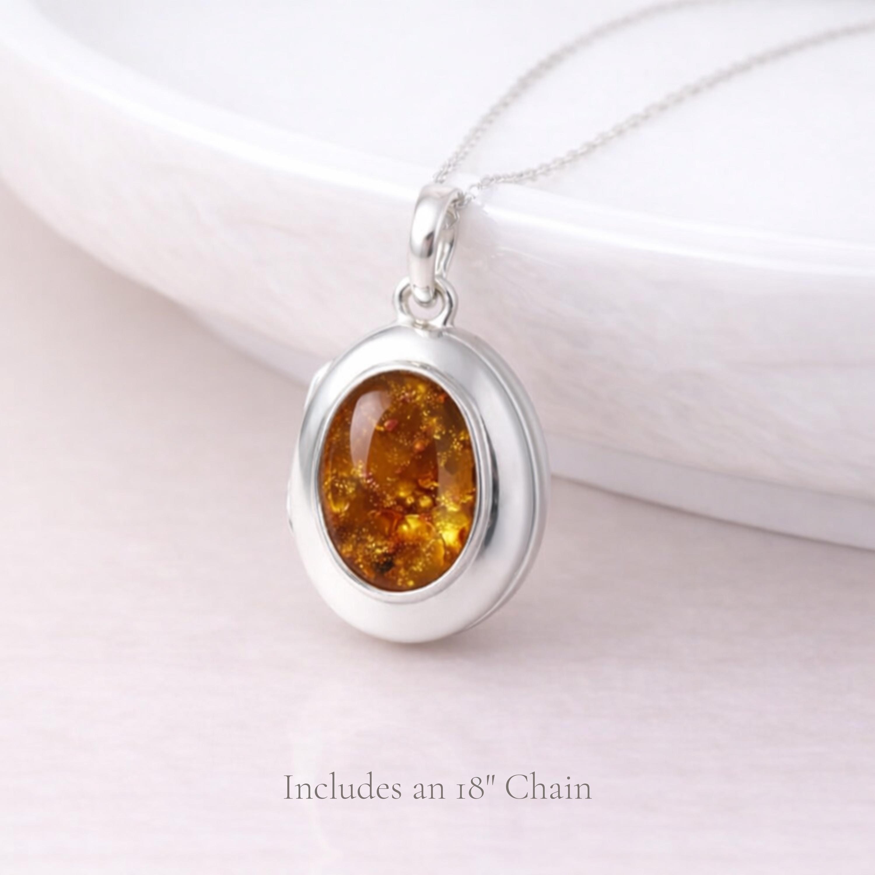 Perfect as a Baltic amber locket, natural gemstone necklace, or personalised keepsake gift, this piece blends earthy warmth with classic elegance.