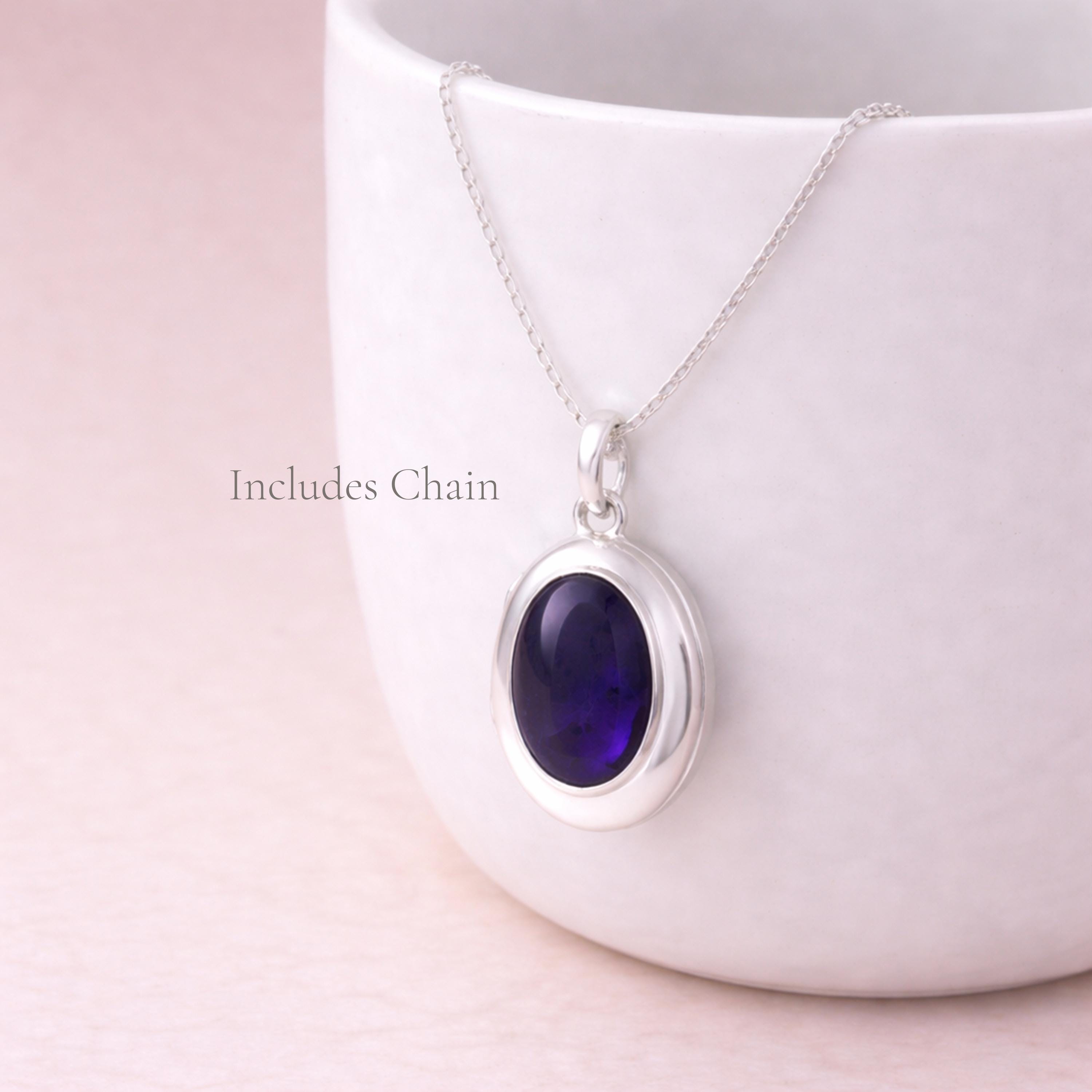 Elegant and distinctive, this iolite locket necklace is crafted from solid 925 sterling silver, combining a timeless design with the deep, captivating tones of natural iolite.