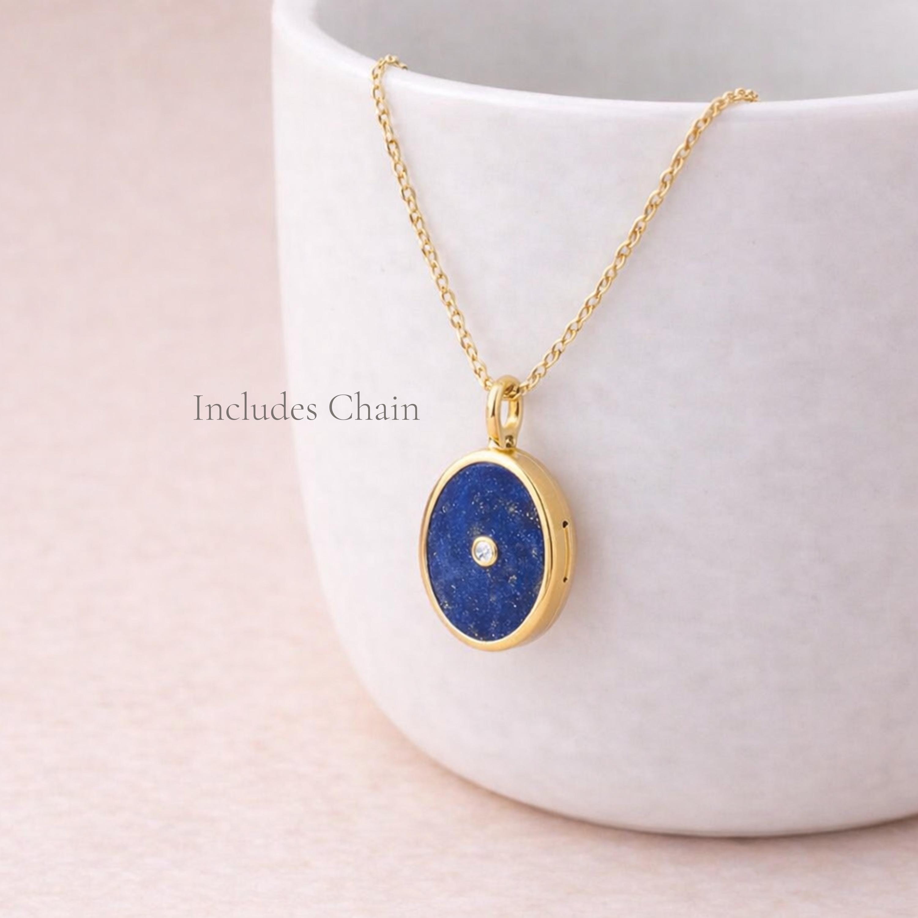 Perfect as a personalised locket necklace, lapis lazuli jewellery gift, or keepsake pendant, this piece blends natural beauty with heartfelt sentiment.