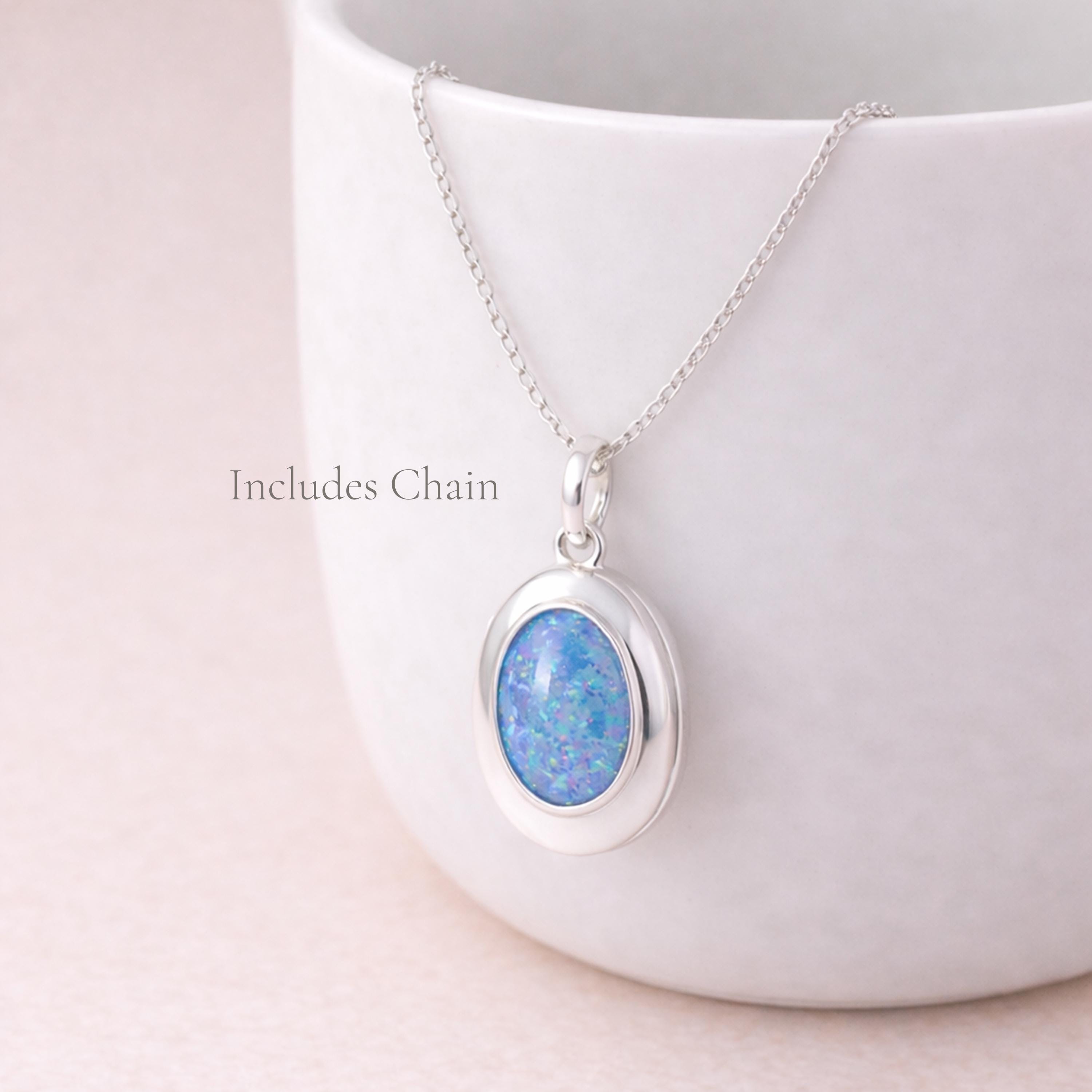 Perfect as a personalised opal locket, October birthstone gift, or sentimental keepsake necklace, this piece blends colour, meaning, and elegance effortlessly.